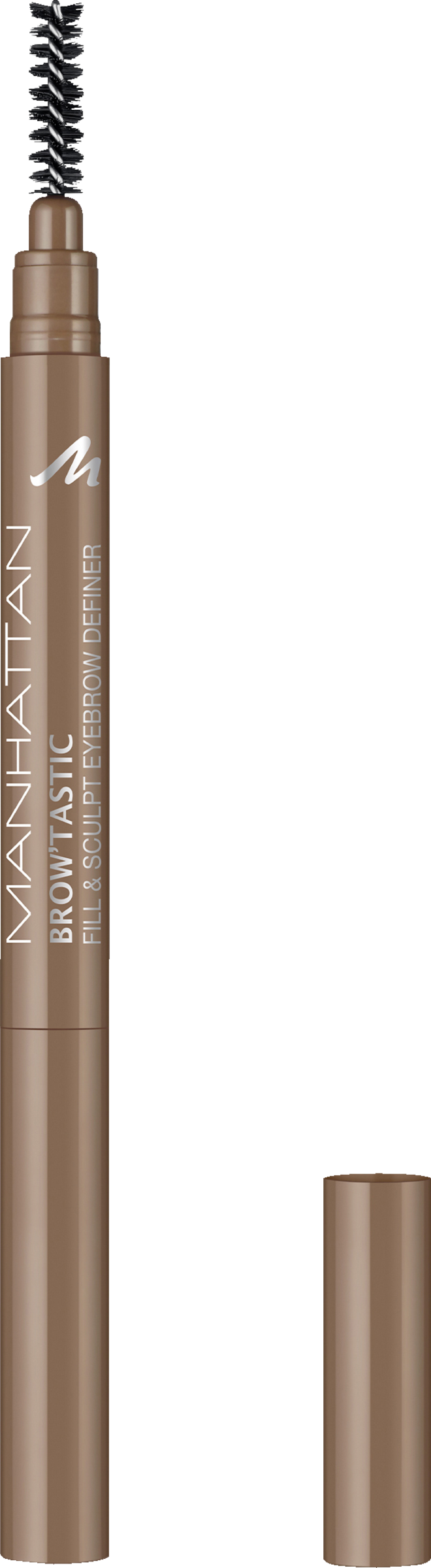 Fill & Sculpt Lasting Perfectiont Brow Definer fra Manhattan er en dobbelt-endet Øjenbrynsblyant til at forme og definere Øjenbryn. Med den trekantede spids på øjenbrynsblyanten kan du nemt tegne præcise konturer for perfekt definerede øjenbryn. Øjenbrynskammens spiralformede Børstehoved fanger selv de mindste øjenbrynshår og former dem perfekt.