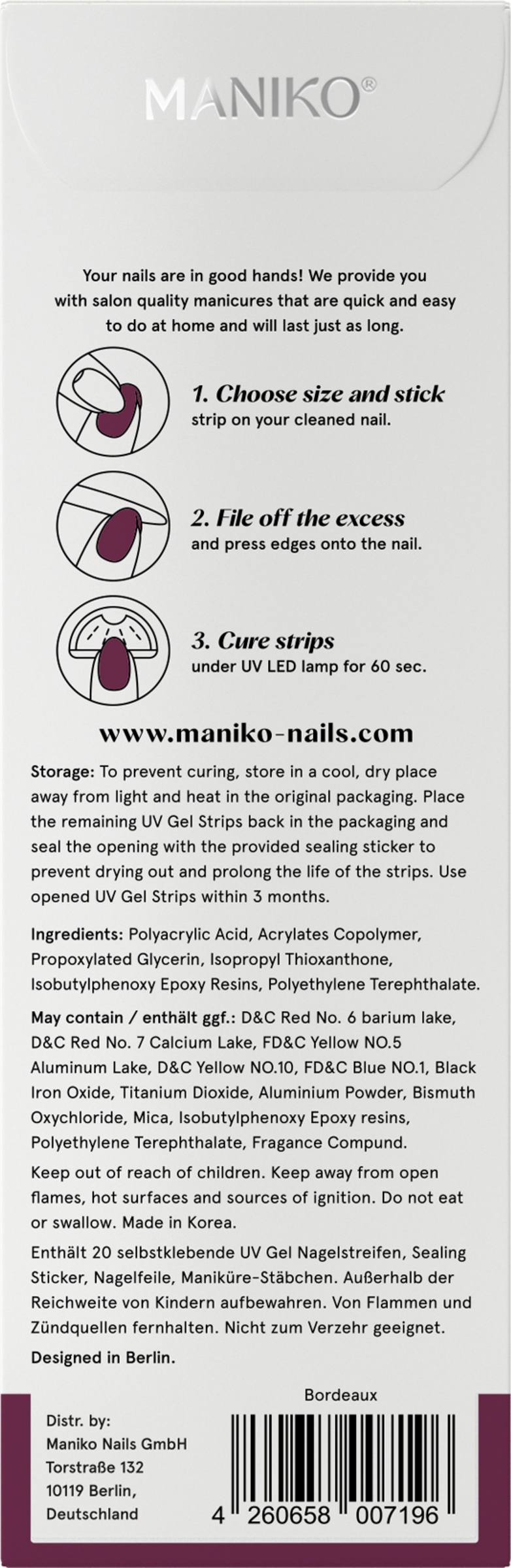Maniko Nails® tilbyder et reelt alternativ til neglesalonen, ganske enkelt hjemmefra. Takket være den sofistikerede UV Gel Strip-teknologi kan gelmanicure i studiokvalitet opnås hurtigt og nemt. Du skal blot sætte det på, fil det ned, helbrede det og erobre verden.