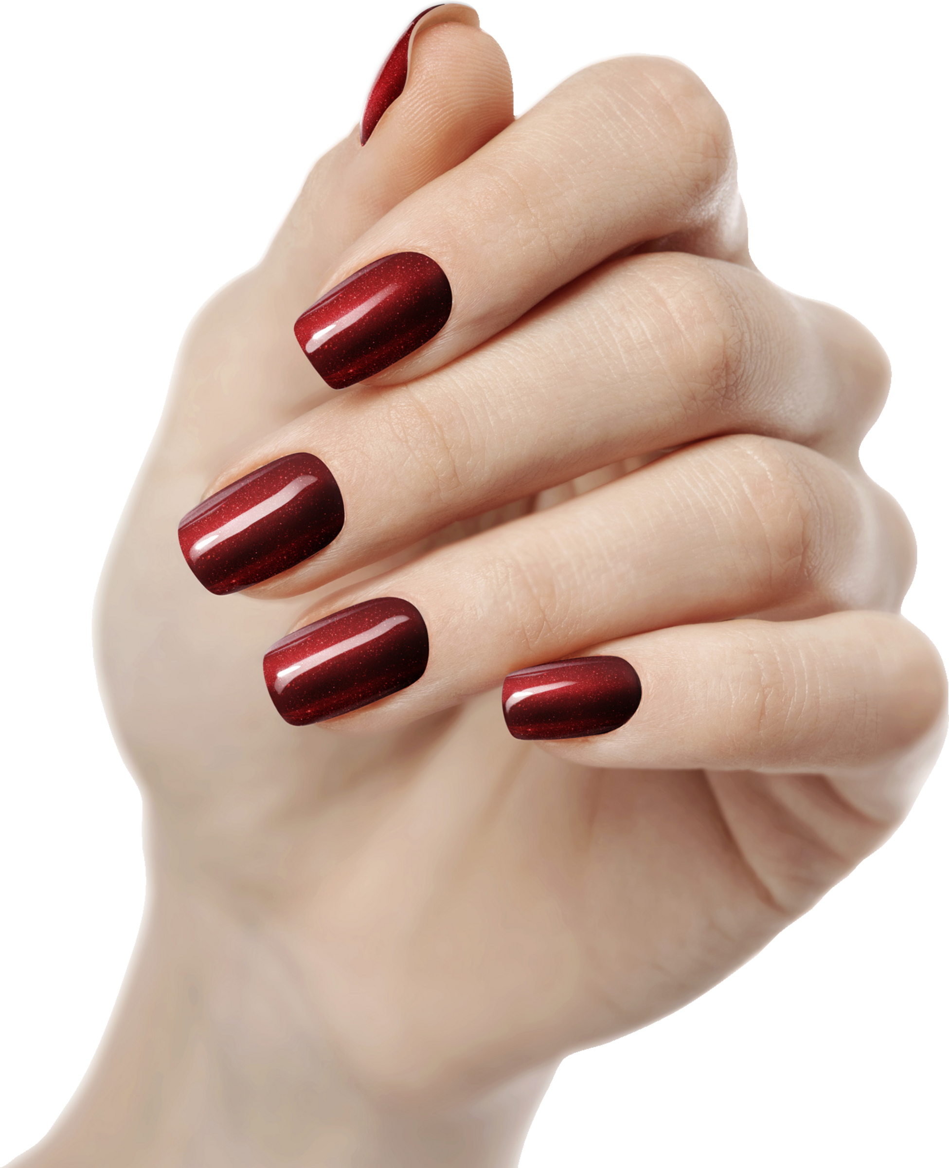 Varm rød med diskrete glitterpartikler for en cat-eye-effekt.