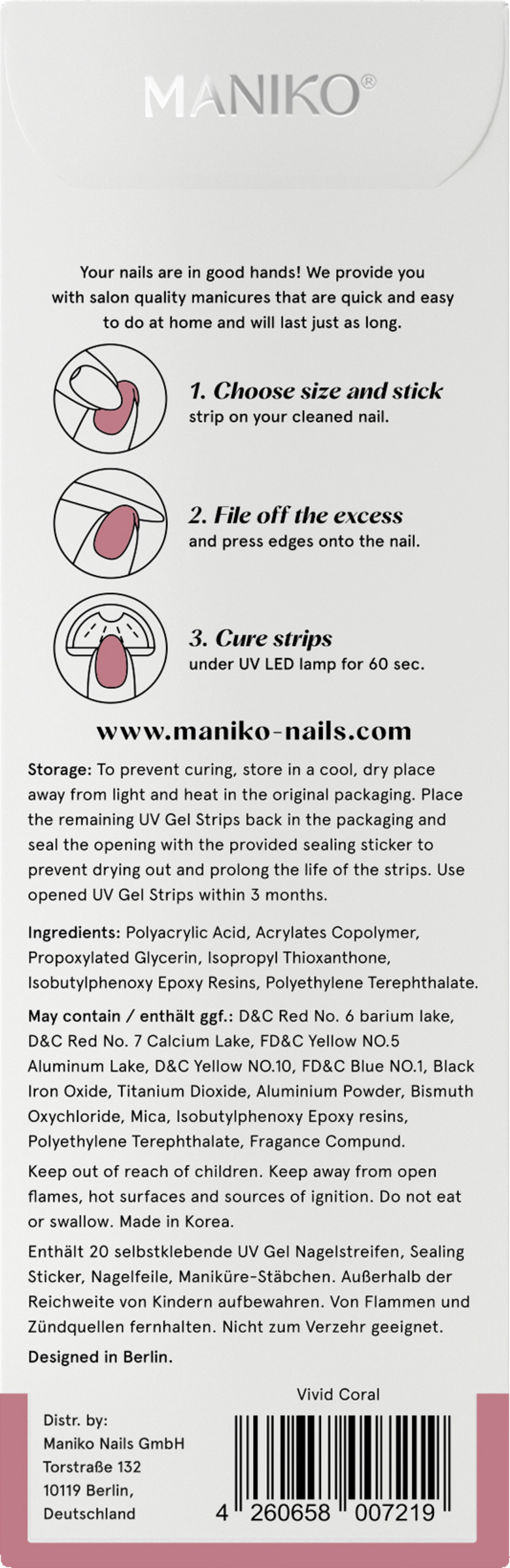 Maniko Nails® tilbyder et reelt alternativ til neglesalonen, ganske enkelt hjemmefra. Takket være den sofistikerede UV Gel Strip-teknologi kan gelmanicure i studiokvalitet opnås hurtigt og nemt. Du skal blot sætte det på, fil det ned, helbrede det og erobre verden.