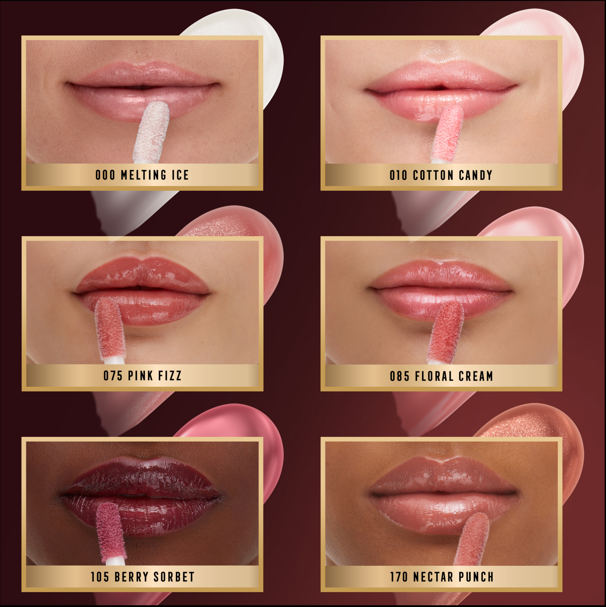 2000 Calorie Lip Glaze fra Max Factor fremtryller et ultrablankt læbelook med en volumeneffekt. Samtidig nærer den læber takket være dens rige plejeformel med hyaluronsyre og squalane. Påført individuelt, fylder det visuelt læber og giver synligt mere volumen, der holder i timevis. lipgloss opnår et endnu mere intenst farveresultat frem for en farvet læbestift . Takket være den ekstra store, bløde applikator kan den påføres skånsomt og nemt på kun én anvendelse . Den lette, rene og veganske formel er ikke-klæbrig og giver maksimal komfort på læber. 2000 Calorie Lip Glaze fås i 6 fortryllende nuancer med en skinnende, cremet og gennemsigtig Finish og er også kendetegnet ved sin forførende, søde duft af vaniljemælk.