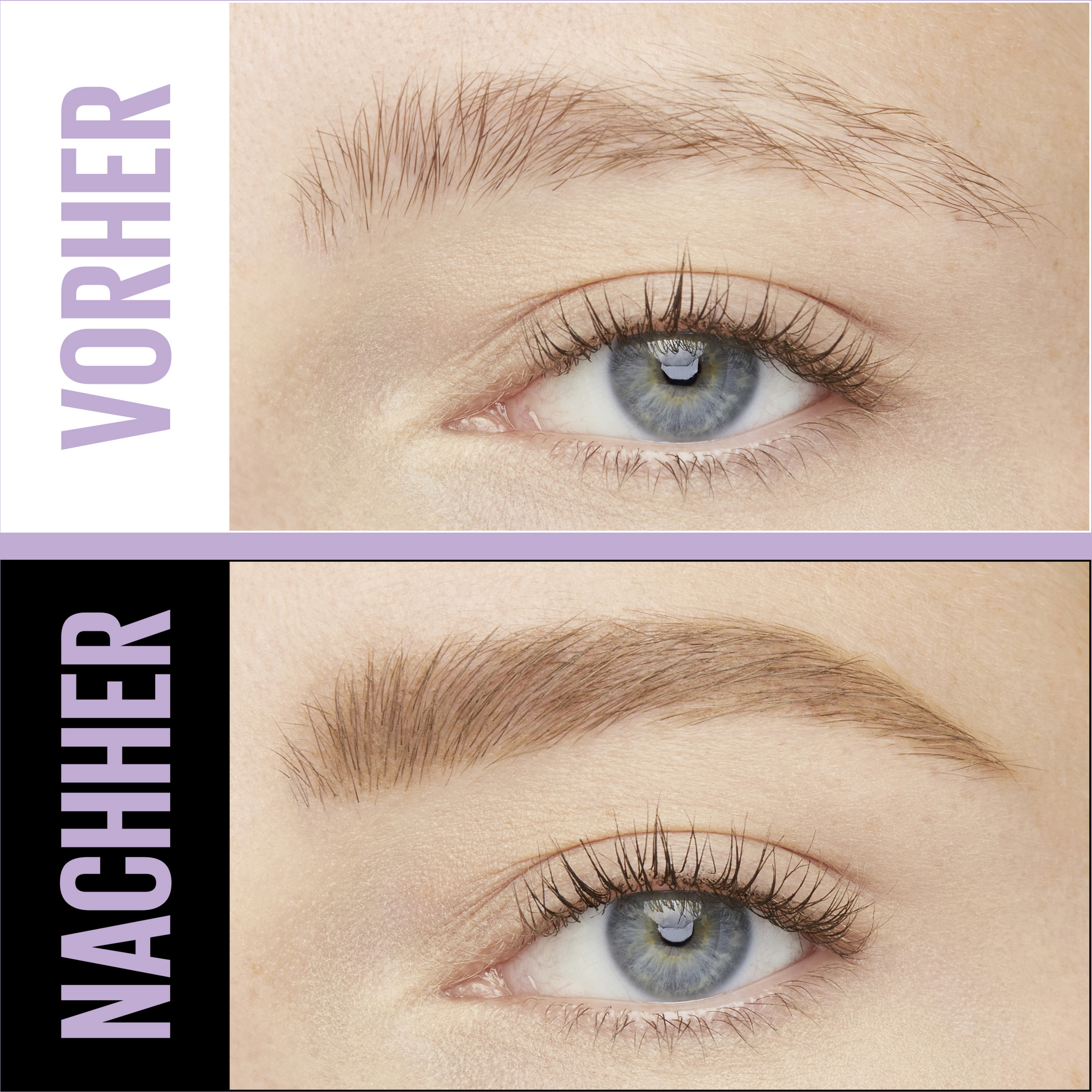 I to trin til naturlige, fyldigere Øjenbryn: Form først dine bryn med penslen fra Express Brow Shaping Pencil. Følg hårets naturlige vækstretning. Tag derefter siden af blyanten og udfyld præcist de små brynhuller med fine linjer.
