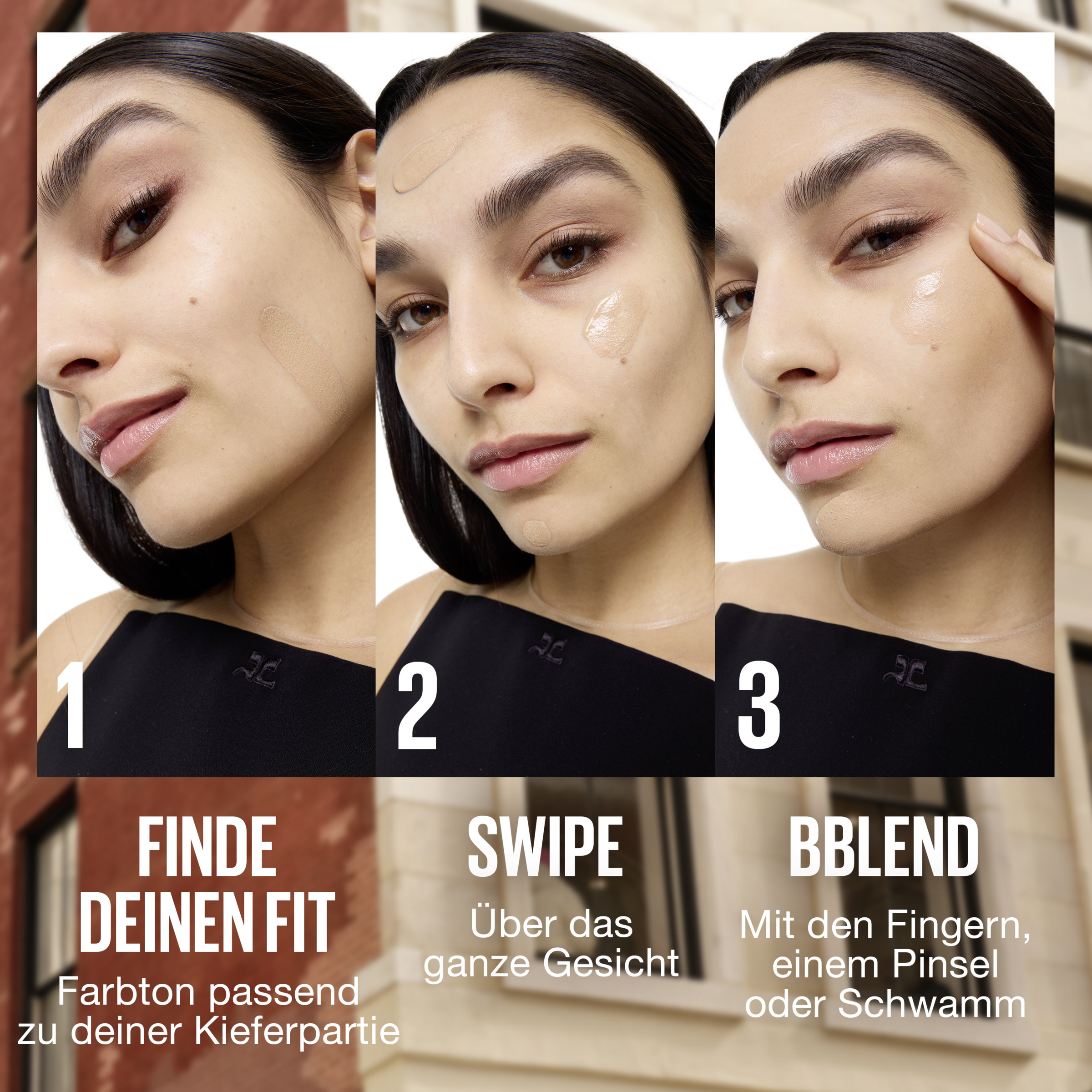 Påfør Fit me Nude BB Cream på tør hud efter rensning af ansigtet. Fordel nu jævnt med en pensel, en makeup-svamp eller fingerspidserne fra midten og ud, og blend forsigtigt, så der ikke er nogen synlige overgange. Hvis det er nødvendigt, kan man påføre et ekstra lag for at øge dækkeevnen. Hvis du har tør hud, er det også en god idé at smøre en dagcreme på inden.