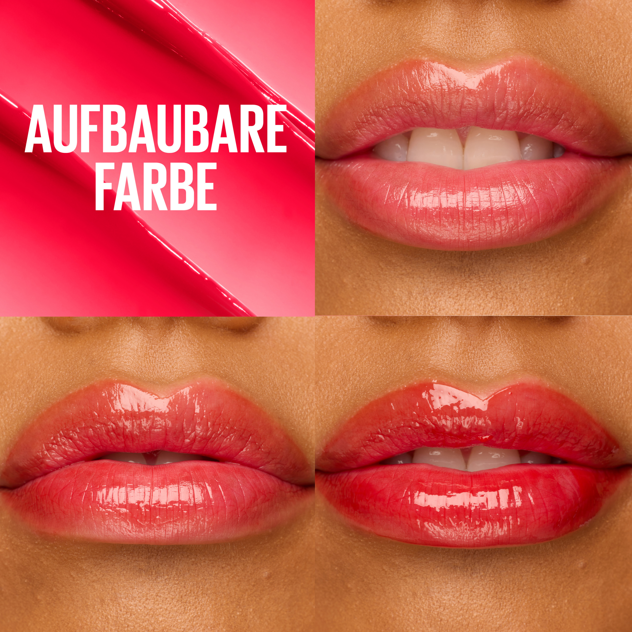 - opbyggelige nuancer til diskrete eller iøjnefaldende glaserede læber