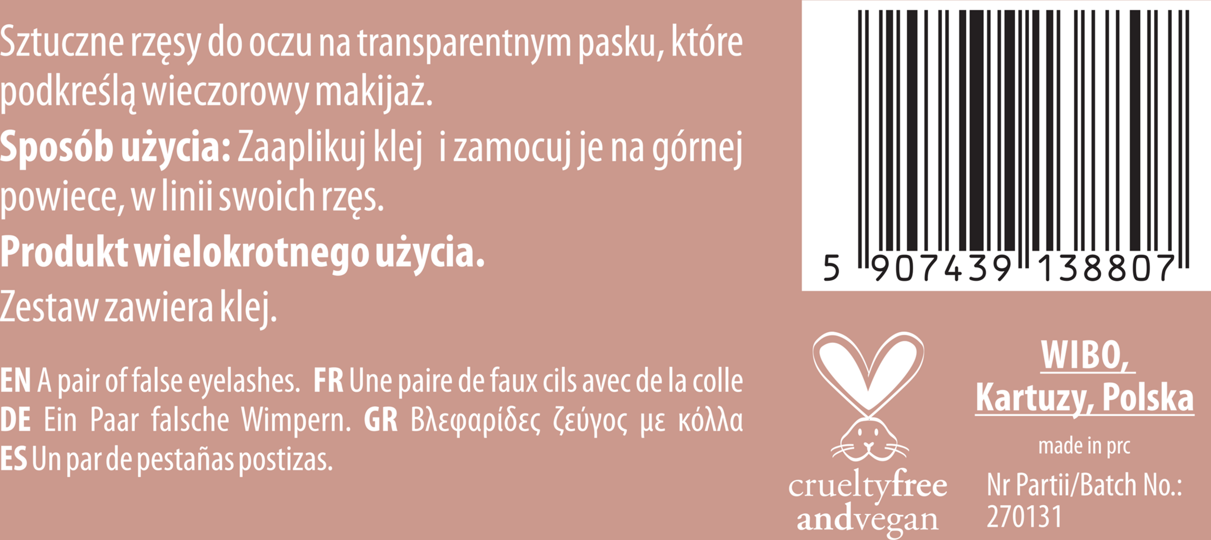 Påfør limen og sæt dem på det øverste øjenlåg fra midten af vippekanten til den yderste øjenkrog. Genanvendeligt produkt med klæbemiddel.