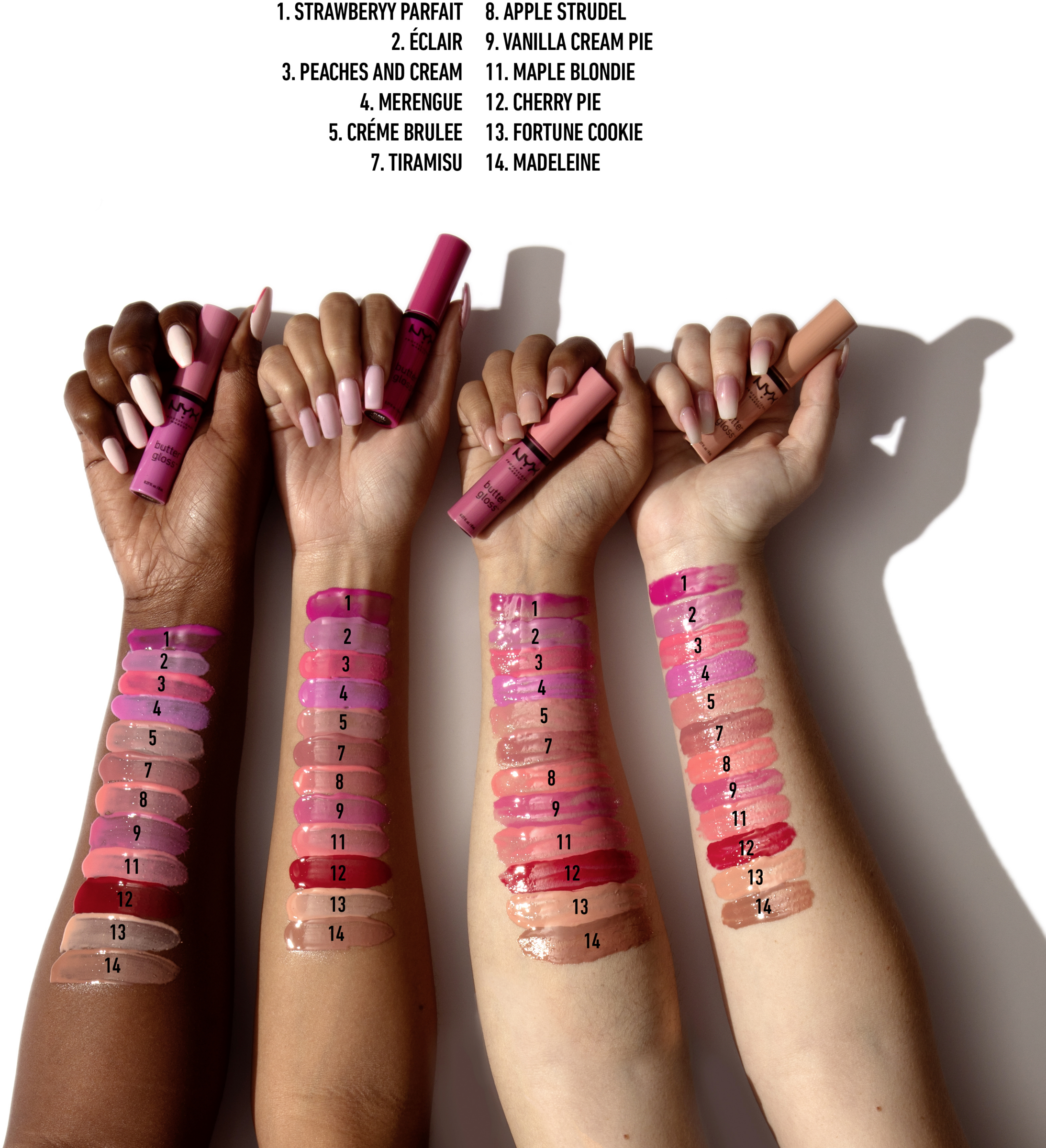 Butterglossen fra NYX Professional Makeup smager dejligt sødt og efterlader læberne smørbløde og silkeagtige. Påfør alene eller over din yndlingslæbestift for en gennemsnitlig dækning, der smelter sammen med dine læber og aldrig limer.