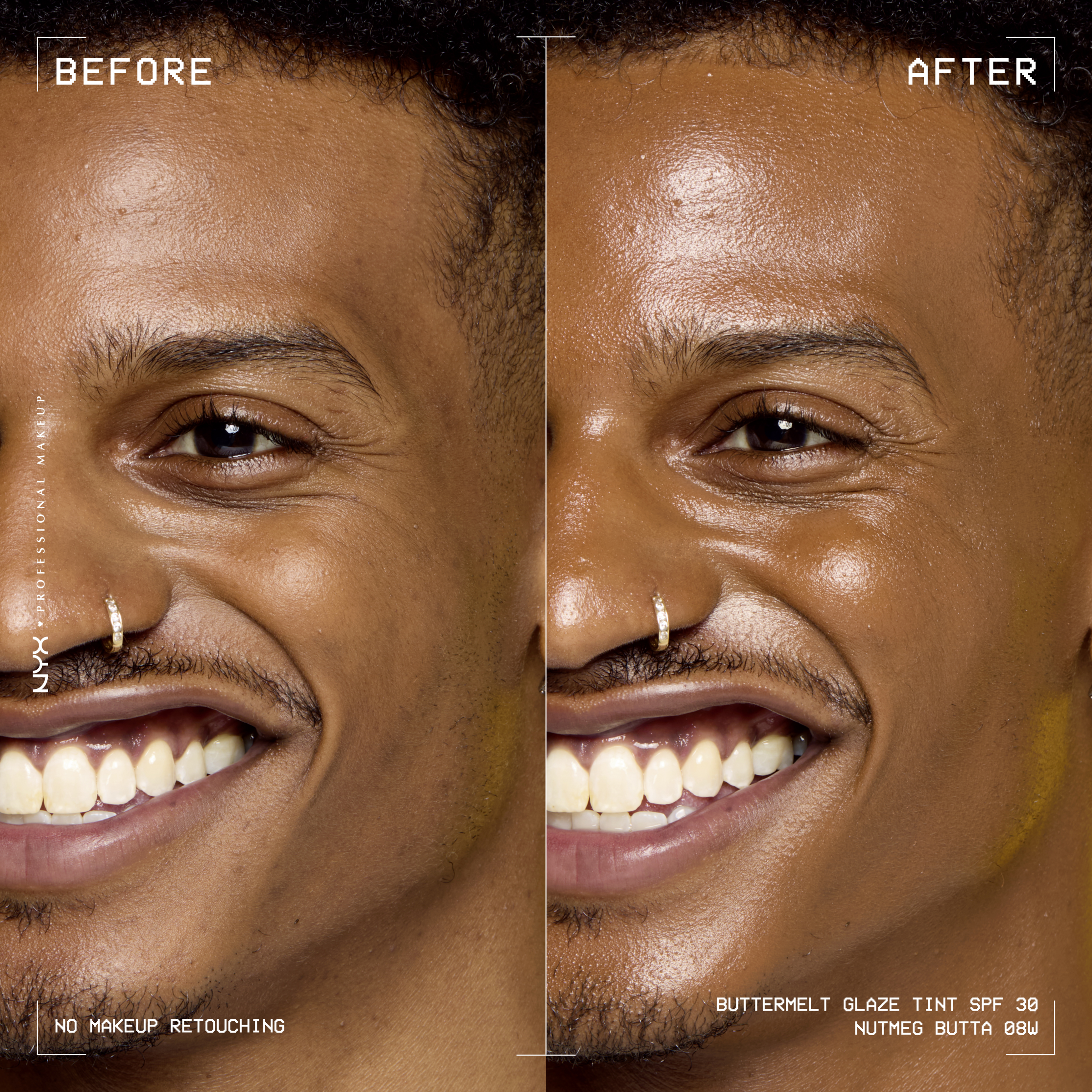 Plejende foundation med en Extra dosis solbeskyttelse! NYX Professional Makeup Buttermelt Glaze Foundation 08 Nutmeg Butta tilbyder alle fordelene ved hudpleje, da nærende ingredienser som sheasmør, mangosmør og niacinamid giver huden tilstrækkelig fugt til dagen - det anbefales særligt til normale til tørre hudtyper. SPF 30-solcremen beskytter også mod skadelige UVA- og UVB-stråler, så foundationen garanterer den perfekte start på dagen - uden at efterlade hvide rester eller en fedtet finish. Den opbyggelige nuance kan påføres over forskellige hudfarver, så hver hudfarve finder sit perfekte match!