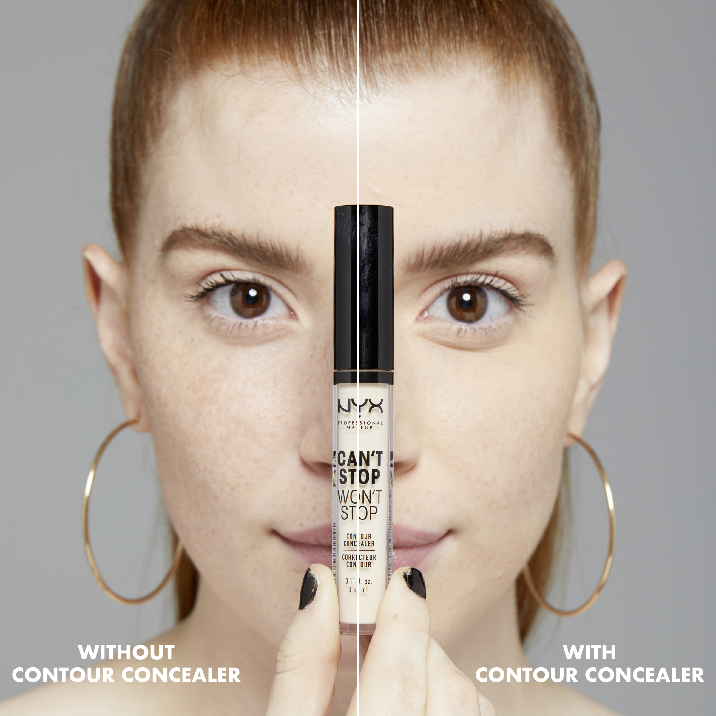 At skjule og modellere er en leg med vores nye Can't Stop Won't Stop Contour Concealer. Denne lette flydende formulering, der fås i 24 kraftigt pigmenterede nuancer, er smudge-proof og opfylder tre makeup-ønsker på én gang. Du kan bruge vores matte formel, der er nem at blande, til at skjule ujævnheder, lysne og give dit ansigt kontur. Dette cremede, multifunktionelle produkt fra NYX Professional Makeup giver høj dækning med en finish, der holder i op til 24 timer.