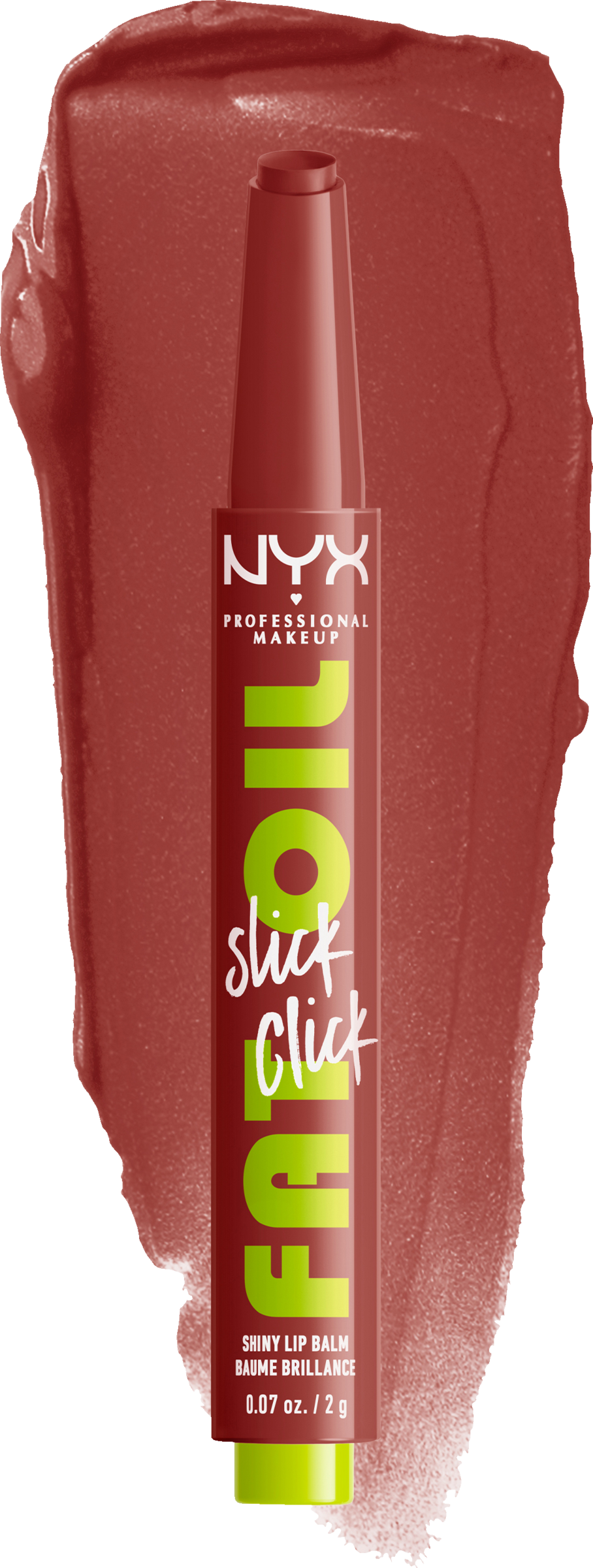 Læbestiften Fat Oil Slick Click i farven Going Viral fra NYX Professional Makeup giver dine læber intensiv farve og fugter dem i op til 12 timer. Formlen er beriget med fugtgivende avocadoolie, beskyttende hindbærfrøolie og antioxidant multebærolie for langvarig pleje af læberne. Den veganske læbestift sikrer en maksimal farveoplevelse og giver sprukne læber en imponerende glans - for sundt udseende, velplejede læber med en skinnende finish.