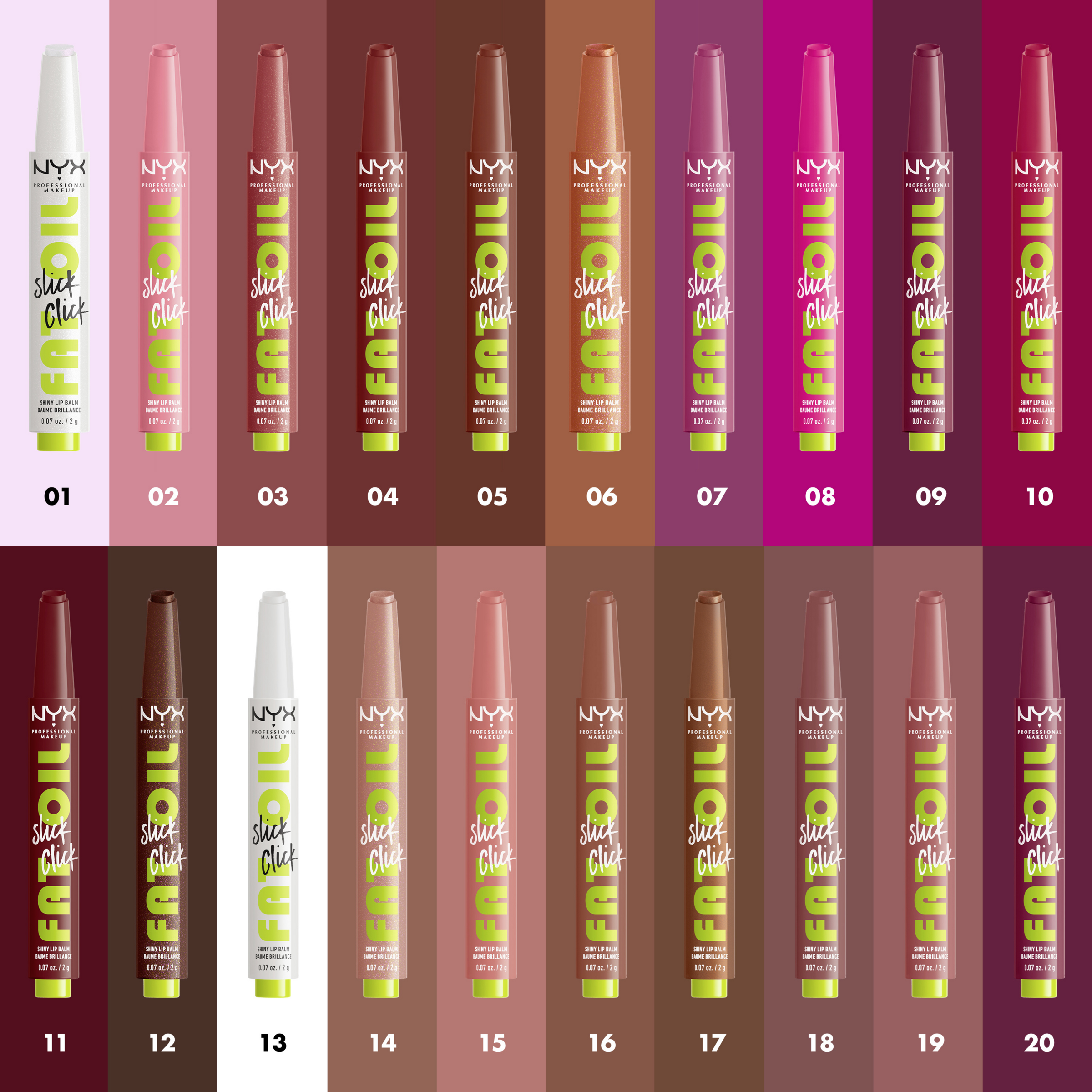 Læbestiften Fat Oil Slick Click i farven DM Me fra NYX Professional Makeup giver dine læber intensiv farve og fugter dem i op til 12 timer. Formlen er beriget med fugtgivende avocadoolie, beskyttende hindbærfrøolie og antioxidant multebærolie for langvarig pleje af læberne. Den veganske læbestift sikrer en maksimal farveoplevelse og giver sprukne læber en imponerende glans - for sundt udseende, velplejede læber med en skinnende finish.