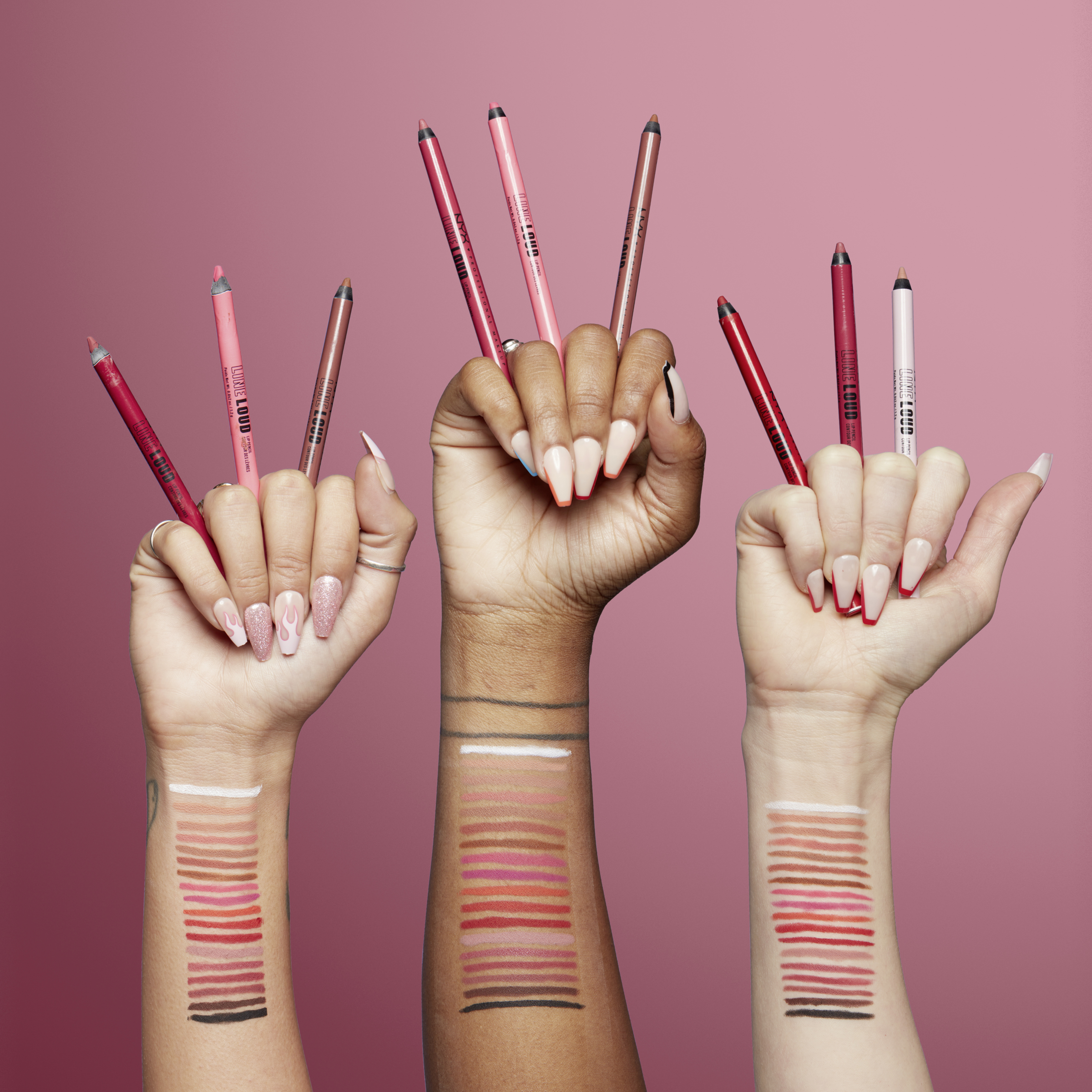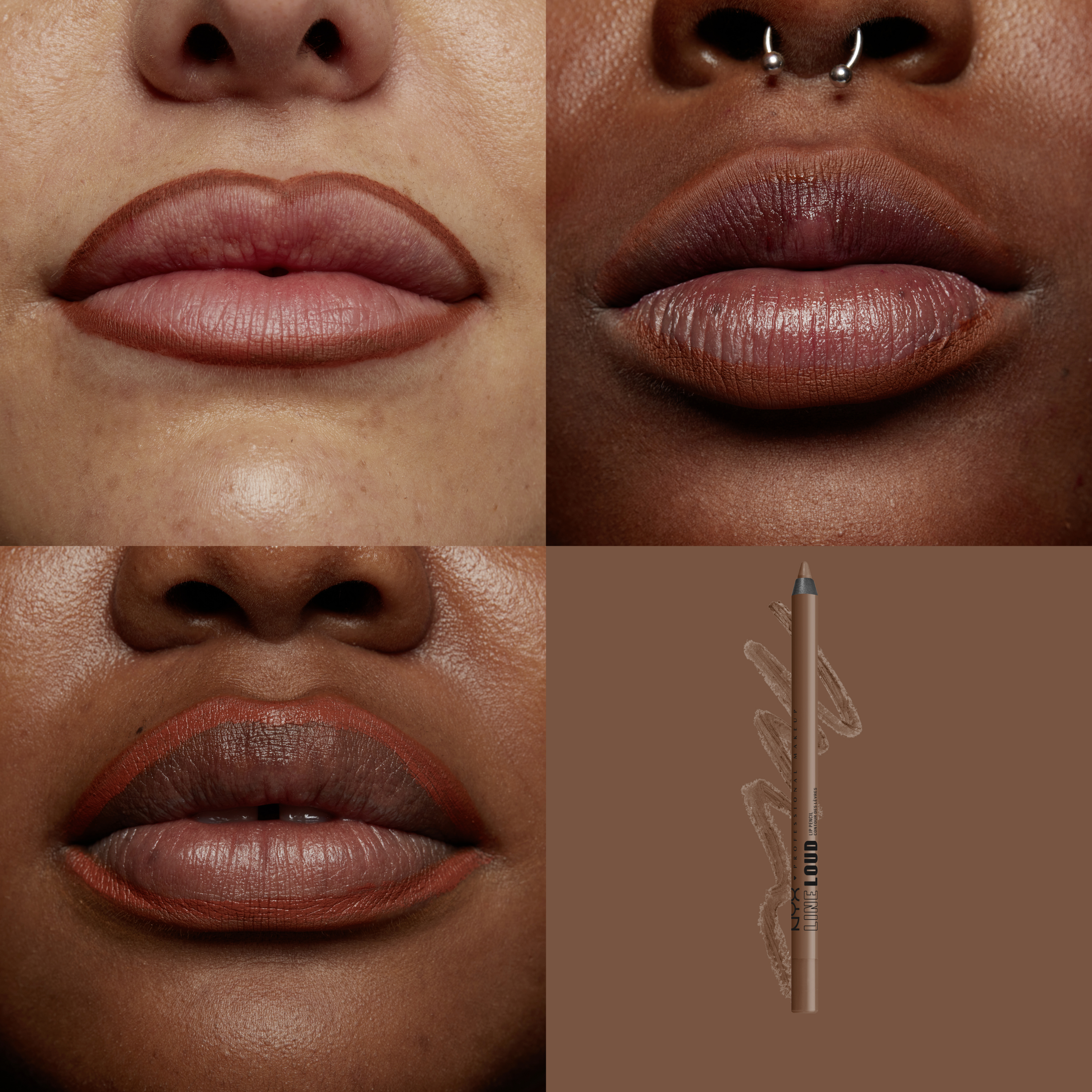 Line Loud Longwear Lip Pencil fra NYX Professional Makeup kan bruges alene eller i kombination med en læbestift. Tegn først læbernes konturer op med den præcise spids af liplineren. Blend derefter teksturen indad, hvis det er nødvendigt. Påfør nu den ønskede læbestift. For at opnå en blank finish kan man også bruge en lipgloss efter påføring af læbekonturstift og læbestift. For 90'er-looket skal du vælge en mørkere lipliner-farve end læbestiften eller bære liplineren alene uden at blende.