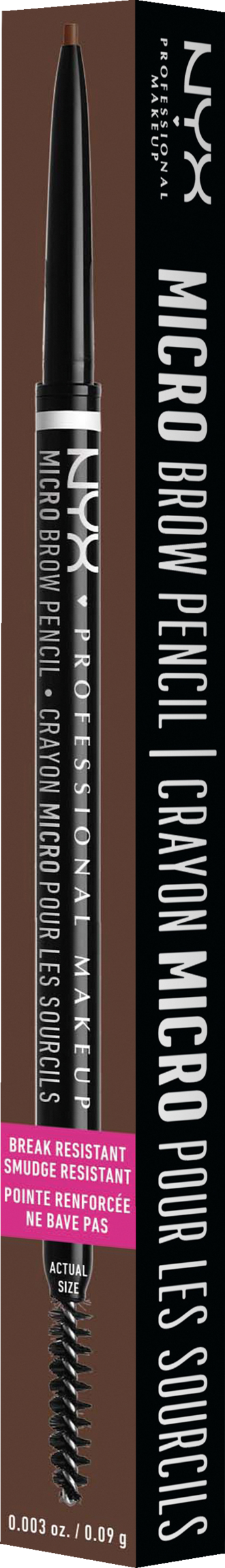 Dobbeltsidet, fin øjenbrynsbørste til at highlighte, forme og definere dine øjenbryn - Præcis øjenbrynsblyant til fine linjer og et særligt naturligt resultat - Fin børste til at blende som de professionelle - Langvarig og naturlig finish takket være en blød chokoladeundertone - Vegansk formel - Leveringsomfang: 1x NYX Professional Makeup Micro Brow Pencil, chokolade, 0,5 gram