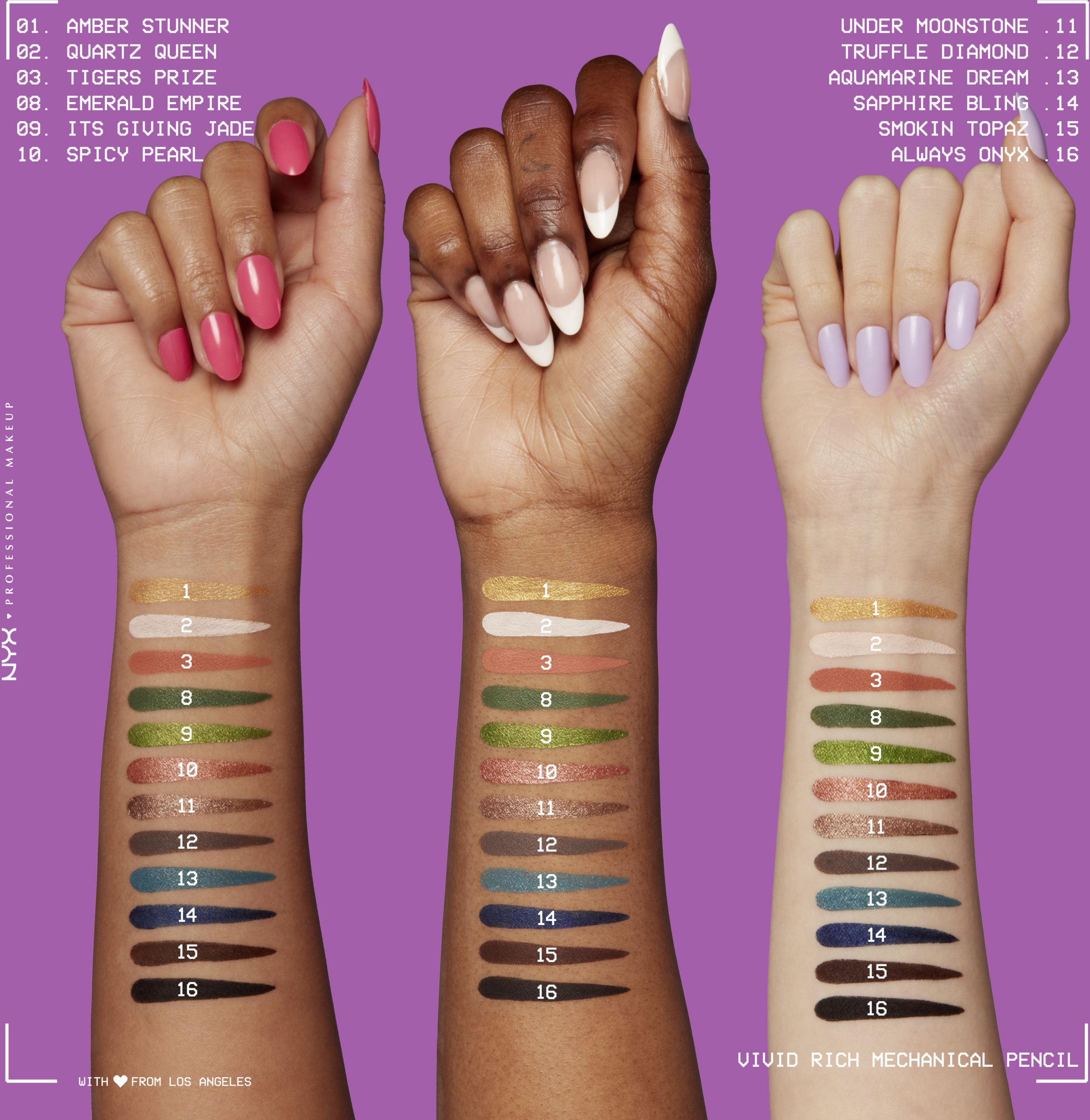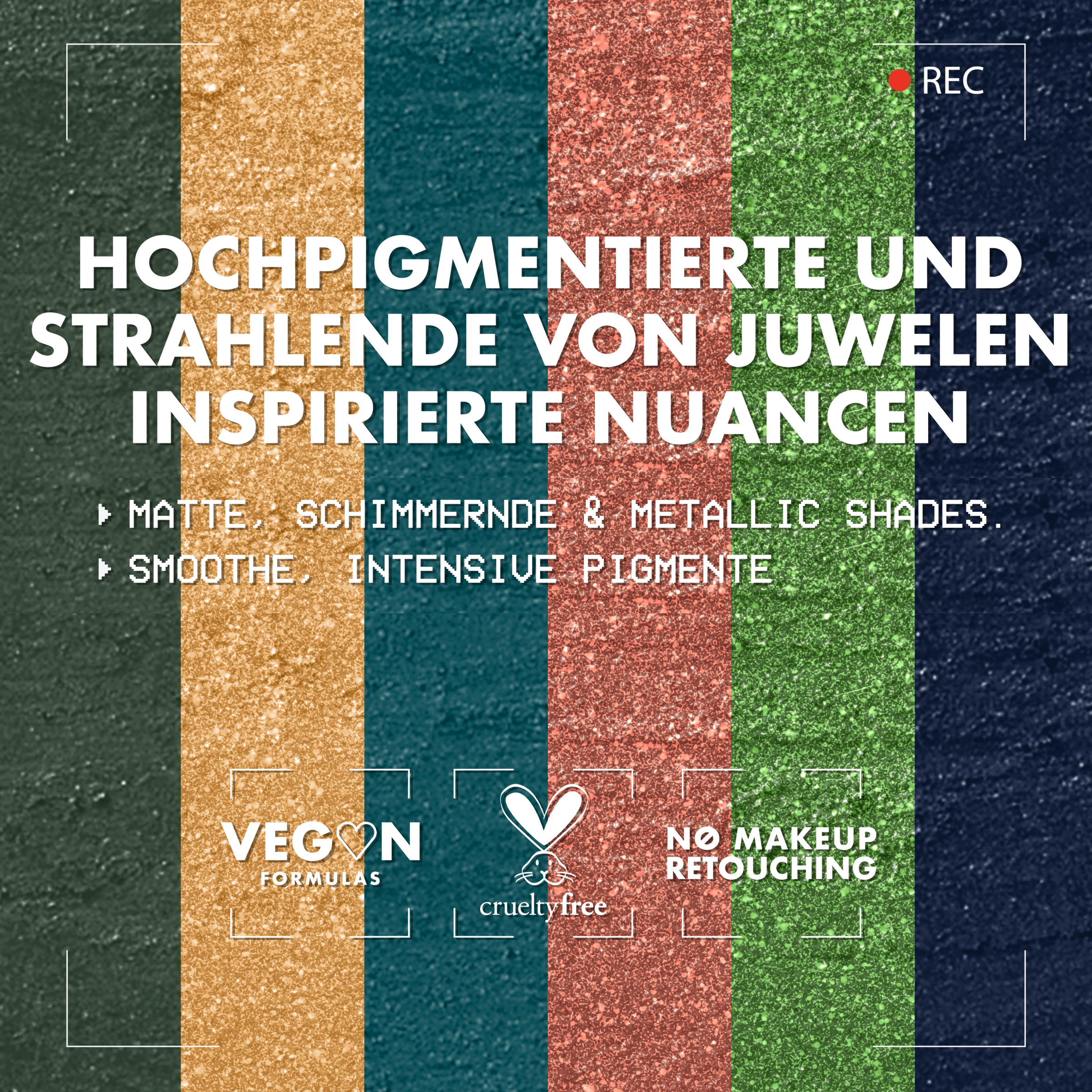 Det er tid til at skabe dit smukkeste look og få fat i dine foretrukne matte, skinnende og metalliske nuancer. Fra skarp perlemor til ravglimt er dette dine dyrebare perler til det mest levende øjenlook nogensinde! 12 levende nuancer med bare ét strøg, fyldt med cremede, ædelstensfarvede pigmenter. Liner-looket er nu gjort nemt. Mix ; match eller monokromt!