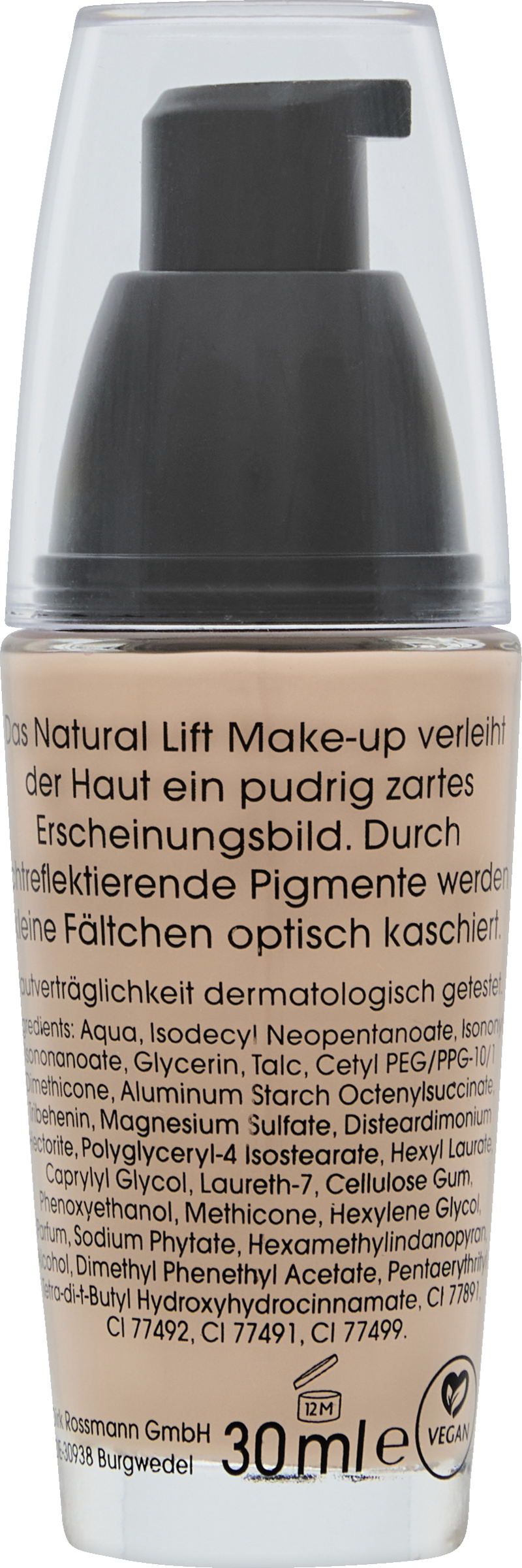 En jævn og ensartet teint er grundlaget for en perfekt makeup. Med sine lysreflekterende pigmenter får den flydende Natural Lift Make-up 02 fra Rival de Loop små rynker til at forsvinde visuelt og giver huden et pudderblødt udseende. Med den praktiske dispenser kan makeuppen tages ud på hygiejnisk vis og doseres præcist – så du får perfekt velplejet hud med et tryk på en knap. Tip: Med en makeup-svamp, f.eks. fra for your Beauty, kan produktet påføres ekstra bekvemt og ensartet.