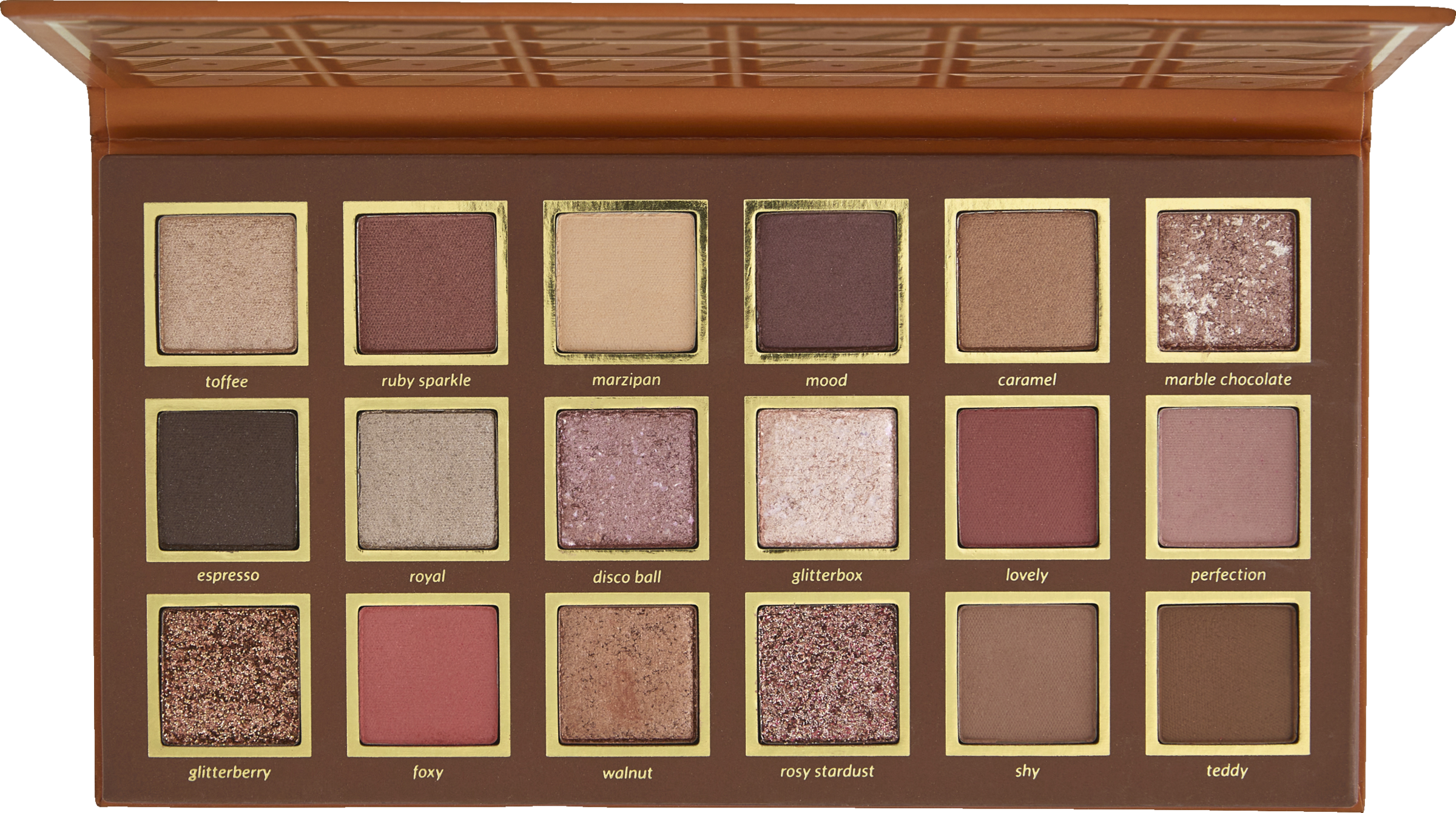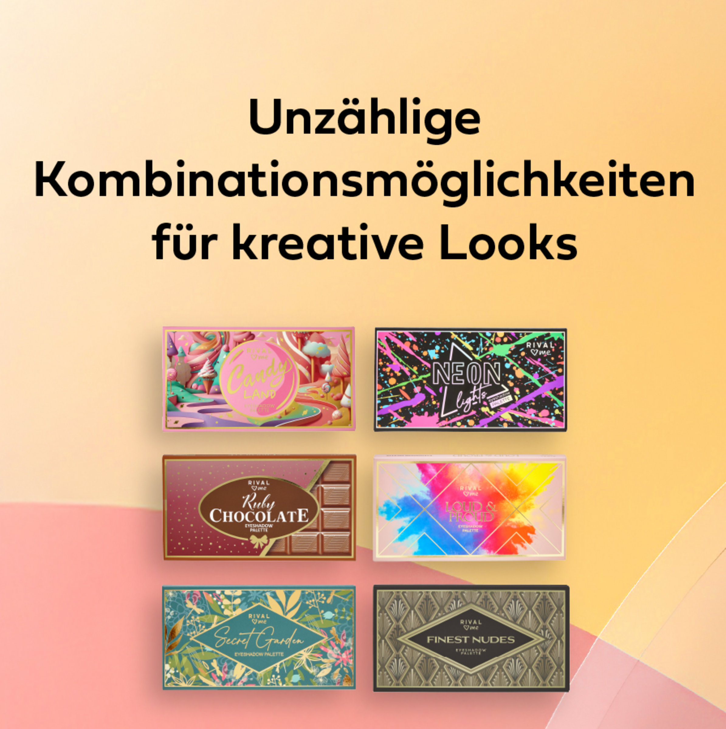 Øjenskyggepalette med 18 øjenskyggefarver til kreative dag- og aftenmakeup-looks. Valget mellem glitrende og matte farver i forskellige nuancer giver utallige kombinationer.