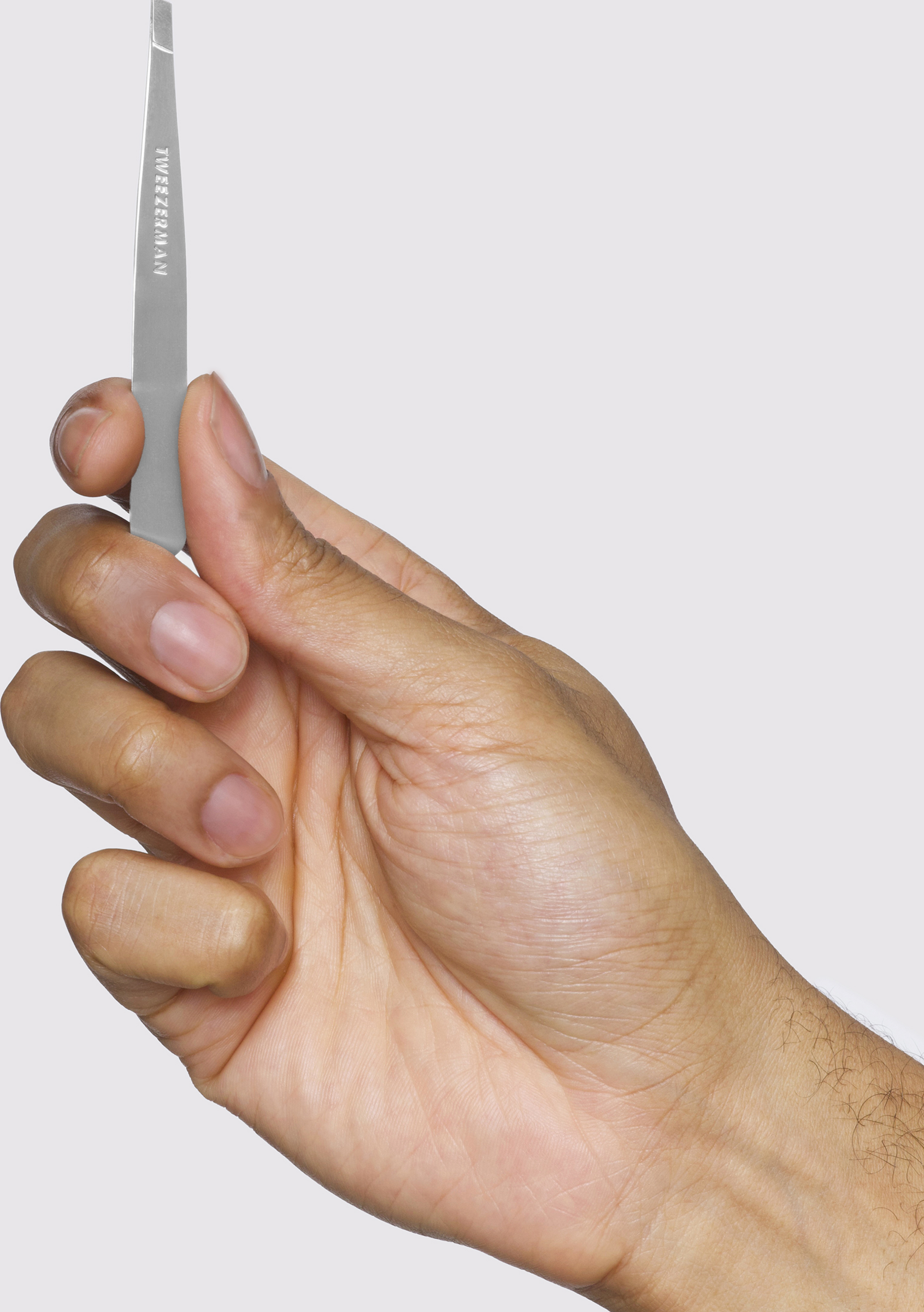- Tag fat i uønskede hår med pincettens spidser og pluk dem ud i hårvækstretningen for at fjerne håret ved roden.