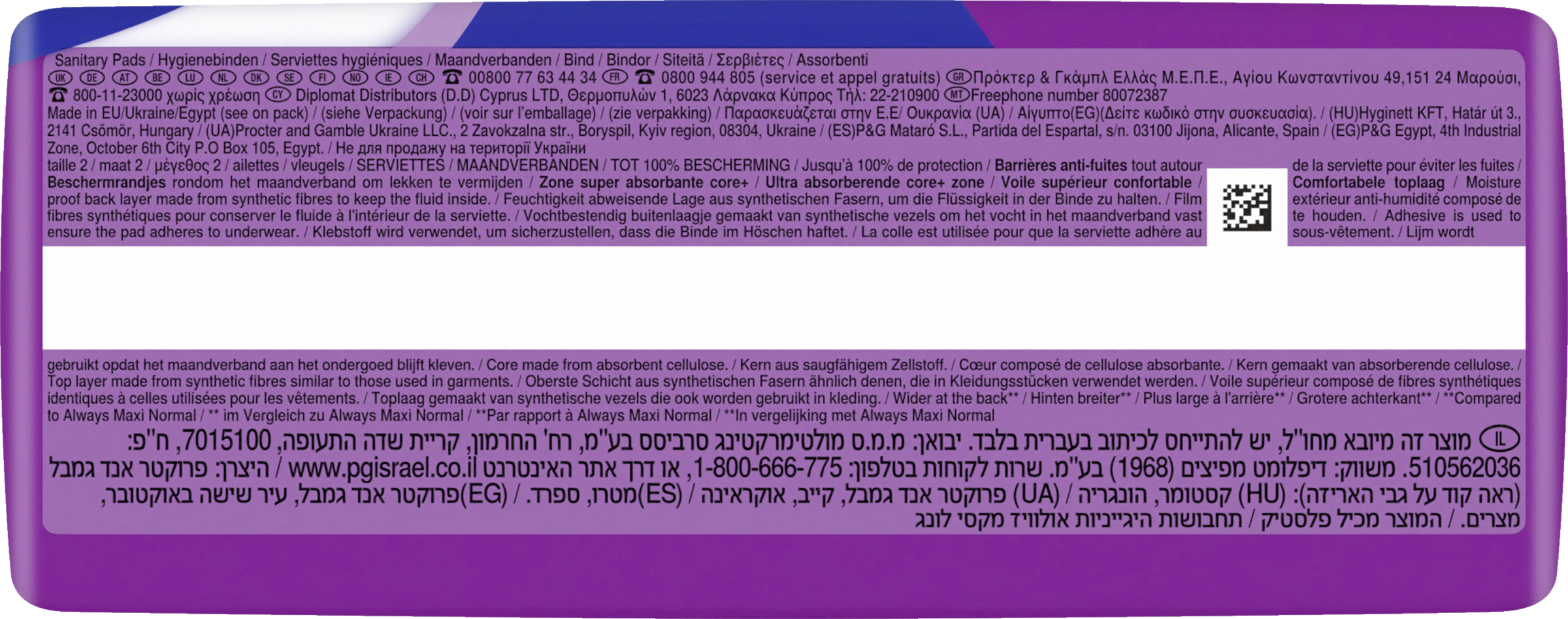 - bredere bagtil (sammenlignet med Always Maxi normal)