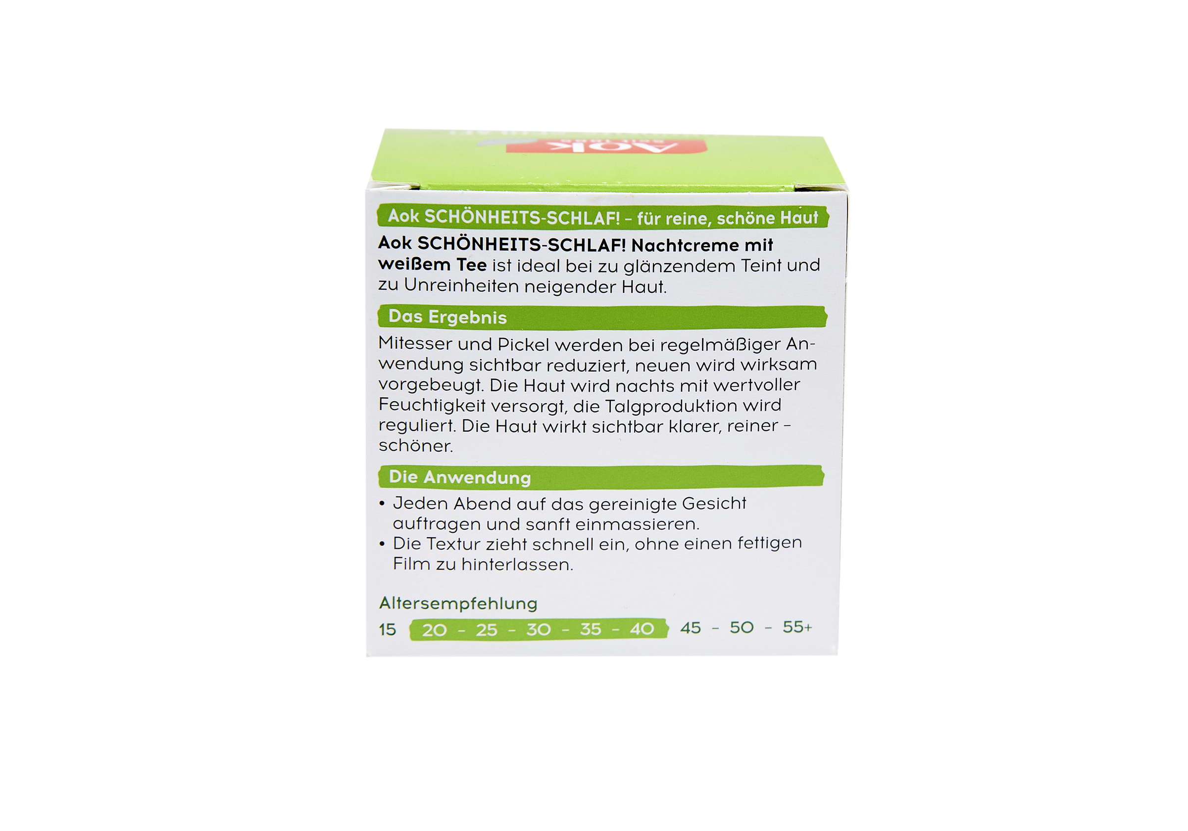 Aok SCHÖNHEITS-SCHLAF! Natcreme med hvid te er ideel til for skinnende teint og hud med tilbøjelighed til urenheder.