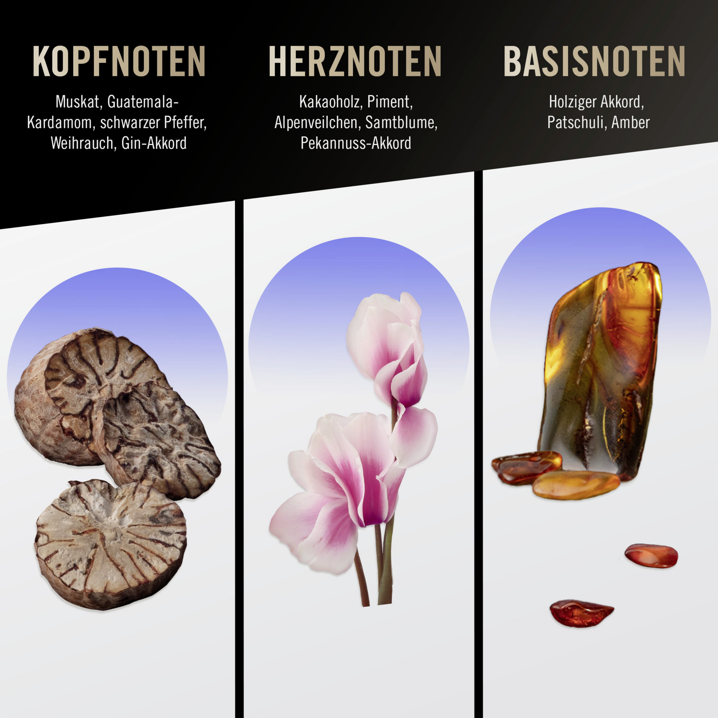 - Topnoter: Muskatnød, kardemomme fra Guatemala, sort peber, røgelse