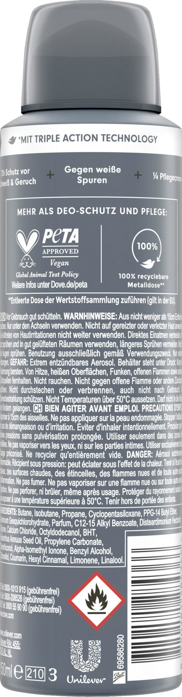 Aluminiumet i deodorantdåsen er genanvendeligt i det uendelige og kan bortskaffes i EU's genbrugsindsamlingssystem.