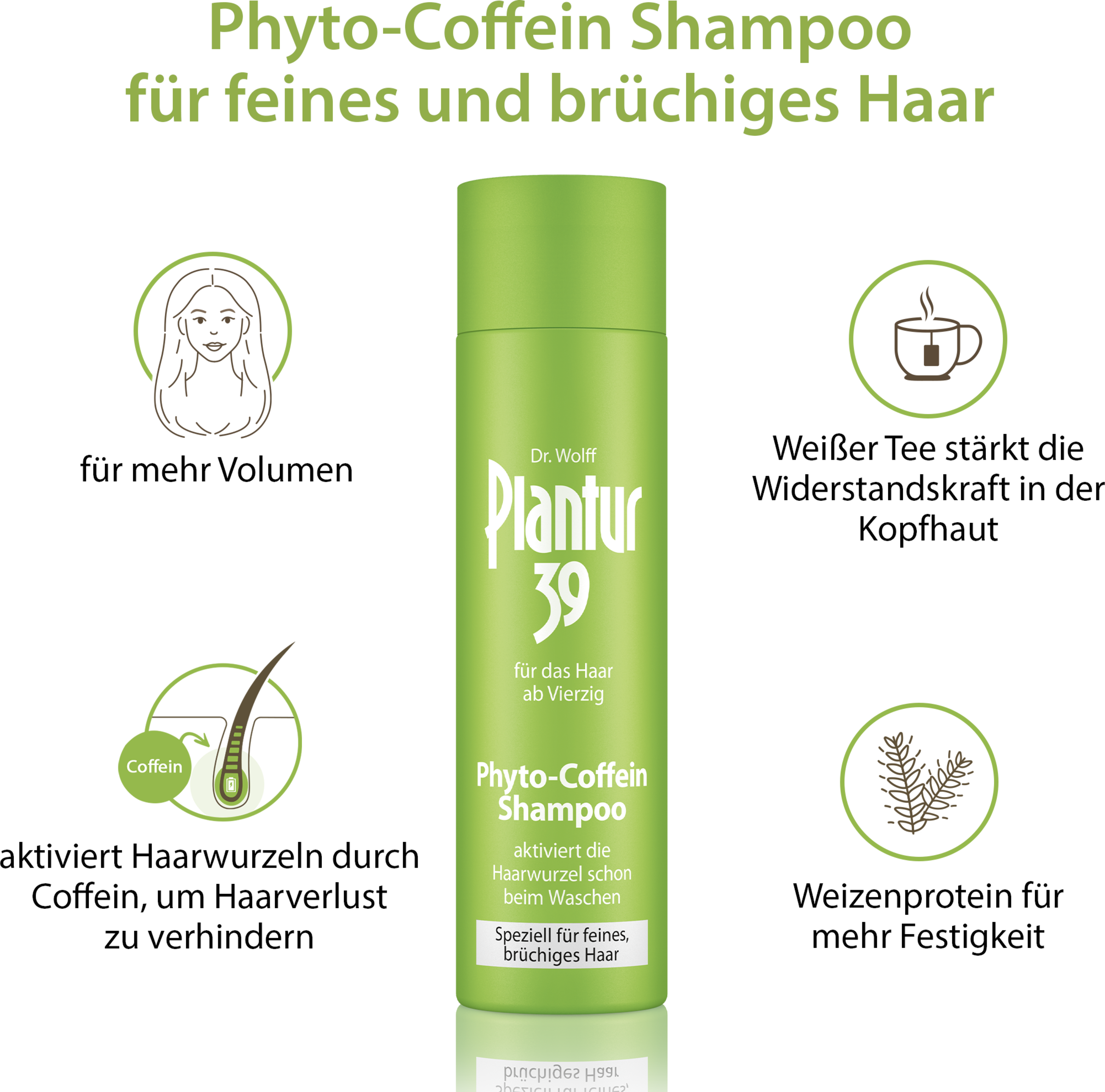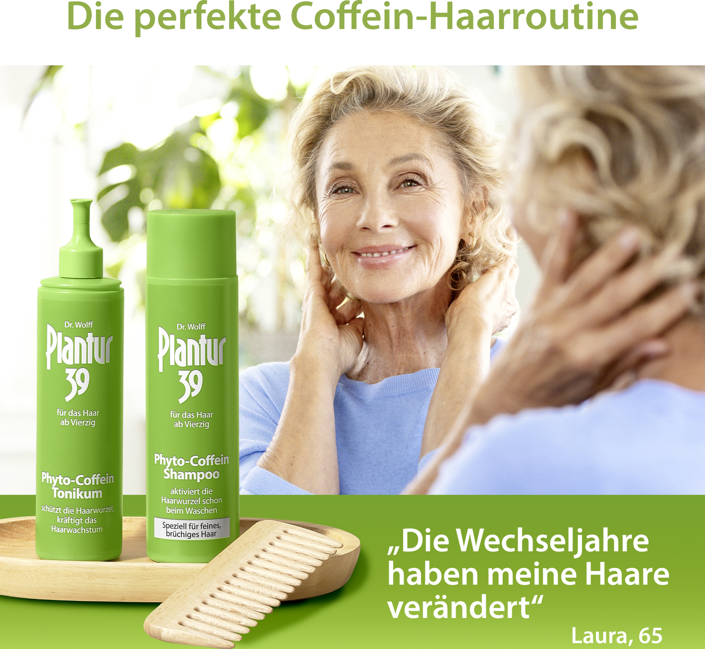 Kvindens hårrødder beskyttes frem til menopausen (overgangsalderen) af en høj andel af kvindelige hormoner (østrogen). Derefter falder denne andel, og de mandlige hormoners indvirkning tager til. Konsekvens: Hårtab. Det aktiverende koffein i denne shampoo trænger allerede under hårvasken helt frem til hårfolliklerne (kan dokumenteres efter 120 sek. virketid). Phyto-aktivstoffer fra naturen hjælper hovedbunden med at beskytte sig mod følgerne af det faldende østrogenniveau.
