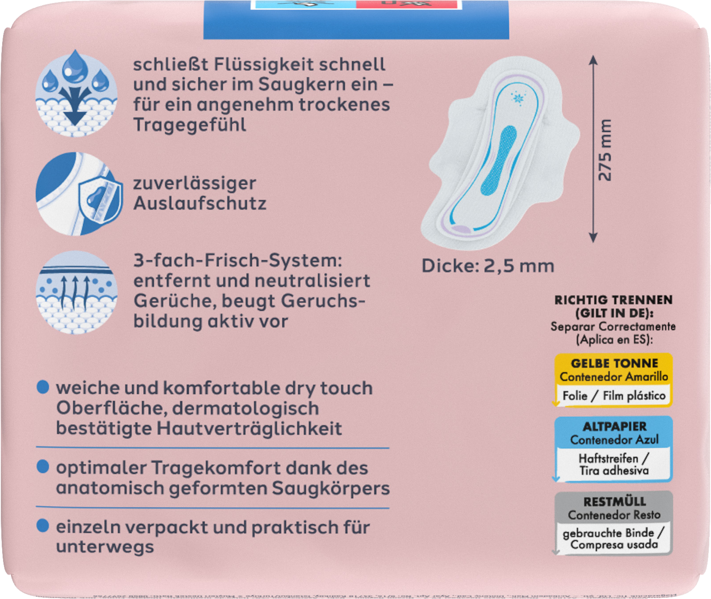 - blød og behagelig (tør overflade) med silkeekstrakt og E-vitamin. Hudvenlighed dermatologisk bekræftet
