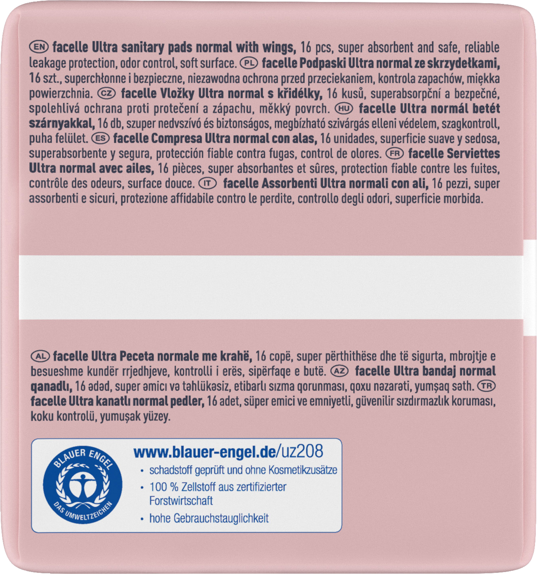 - blød og behagelig (tør overflade) med silkeekstrakt og E-vitamin. Hudvenlighed dermatologisk bekræftet