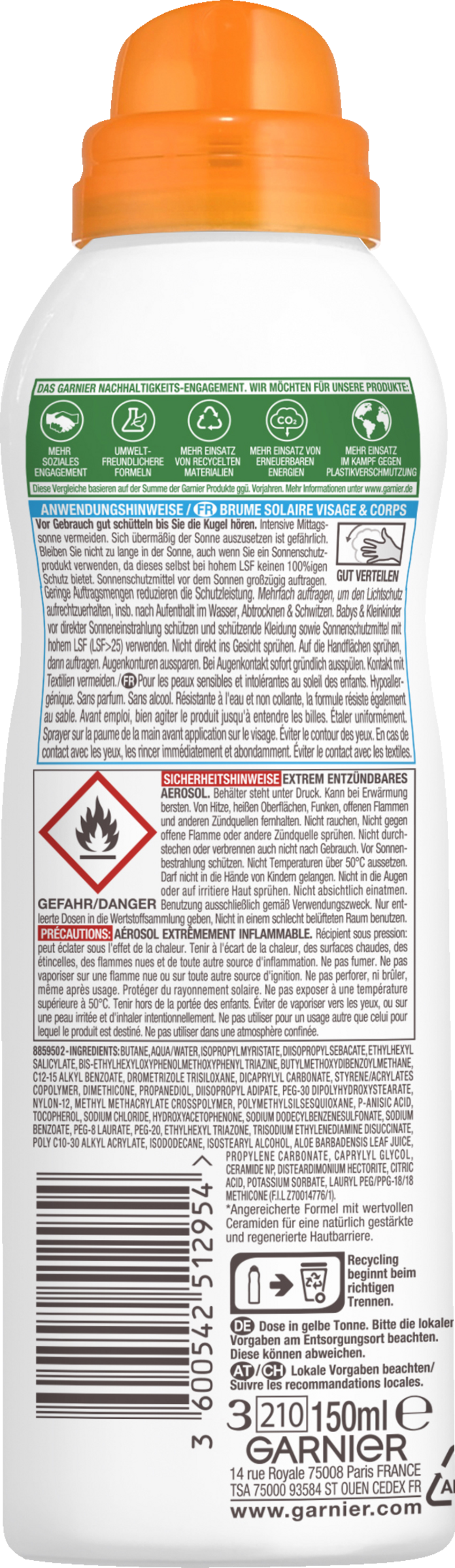 Børn tilbringer meget tid udendørs, men er endnu mere følsomme over for sollys end voksne. Derfor er solbeskyttelse med en høj solbeskyttelsesfaktor et must for dem. Den ideelle solbeskyttelse til uafbrudt sjov: Garnier Ambre Solaire Kids Sensitive Expert+ Anti-Sand Spray med SPF 50+ forhindrer sand i at sætte sig fast på huden. Takket være den sandafvisende, ikke-klæbende formel kan granulatet blot tørres af. Med en meget effektiv solbeskyttelse mod UVA- og UVB-stråler er børns følsomme hud fuldt ud beskyttet - både mod solskoldning og mod yderligere hudskader forårsaget af soleksponering. Og for at de hurtigt kan komme ud og lege i sandet, er Garnier Ambre Solaire Kids Sensitive Expert+ Anti-Sand Spray nem at spraye på og absorberes hurtigt. Det gør også solbeskyttelse sjovt for børn.