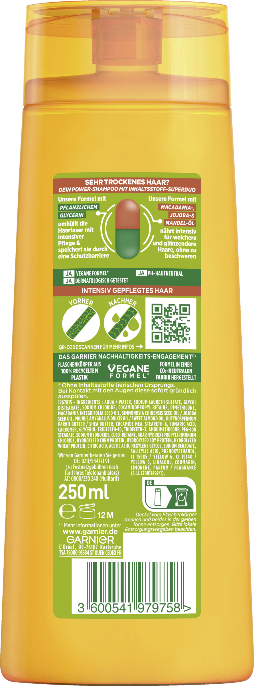 AQUA / WATER • SODIUM LAURETH SULFATE • GLYCOL DISTEARATE • COCAMIDOPROPYL BETAINE • DIMETHICONE • SODIUM CHLORIDE • MACADAMIA TERNIFOLIA SEED OIL • SACCHARUM OFFICINARUM EXTRACT / SUGARCANE EXTRACT • CAMELLIA SINENSIS LEAF EXTRACT • SIMMONDSIA CHINENSIS SEED OIL / JOJOBA SEED OIL • PRUNUS AMYGDALUS DULCIS OIL / SWEET ALMOND OIL • COCOS NUCIFERA OIL / COCONUT OIL • CITRUS LIMON FRUIT EXTRACT / LEMON FRUIT EXTRACT • PYRUS MALUS FRUIT EXTRACT / APPLE FRUIT EXTRACT • BUTYROSPERMUM PARKII BUTTER / SHEA BUTTER • PEG-100 STEARATE • COCAMIDE MEA • STEARETH-6 • FUMARIC ACID • CARBOMER • NIACINAMIDE • LEUCONOSTOC/RADISH ROOT FERMENT FILTRATE • TRIDECETH-10 • TRIDECETH-3 • AMODIMETHICONE • SODIUM HYDROXIDE • PYRIDOXINE HCl • COCO-BETAINE • GUAR HYDROXYPROPYLTRIMONIUM CHLORIDE • HYDROXYPROPYLTRIMONIUM LEMON PROTEIN • CAPRYLYL GLYCOL • CITRIC ACID • ACETIC ACID • HEXYLENE GLYCOL • SODIUM BENZOATE • SALICYLIC ACID • PHENOXYETHANOL • CI 15985 / YELLOW 6 • CI 19140 / YELLOW 5 • LINALOOL • COUMARIN • LIMONENE • PARFUM / FRAGRANCE (F.I.L. C275774/1)