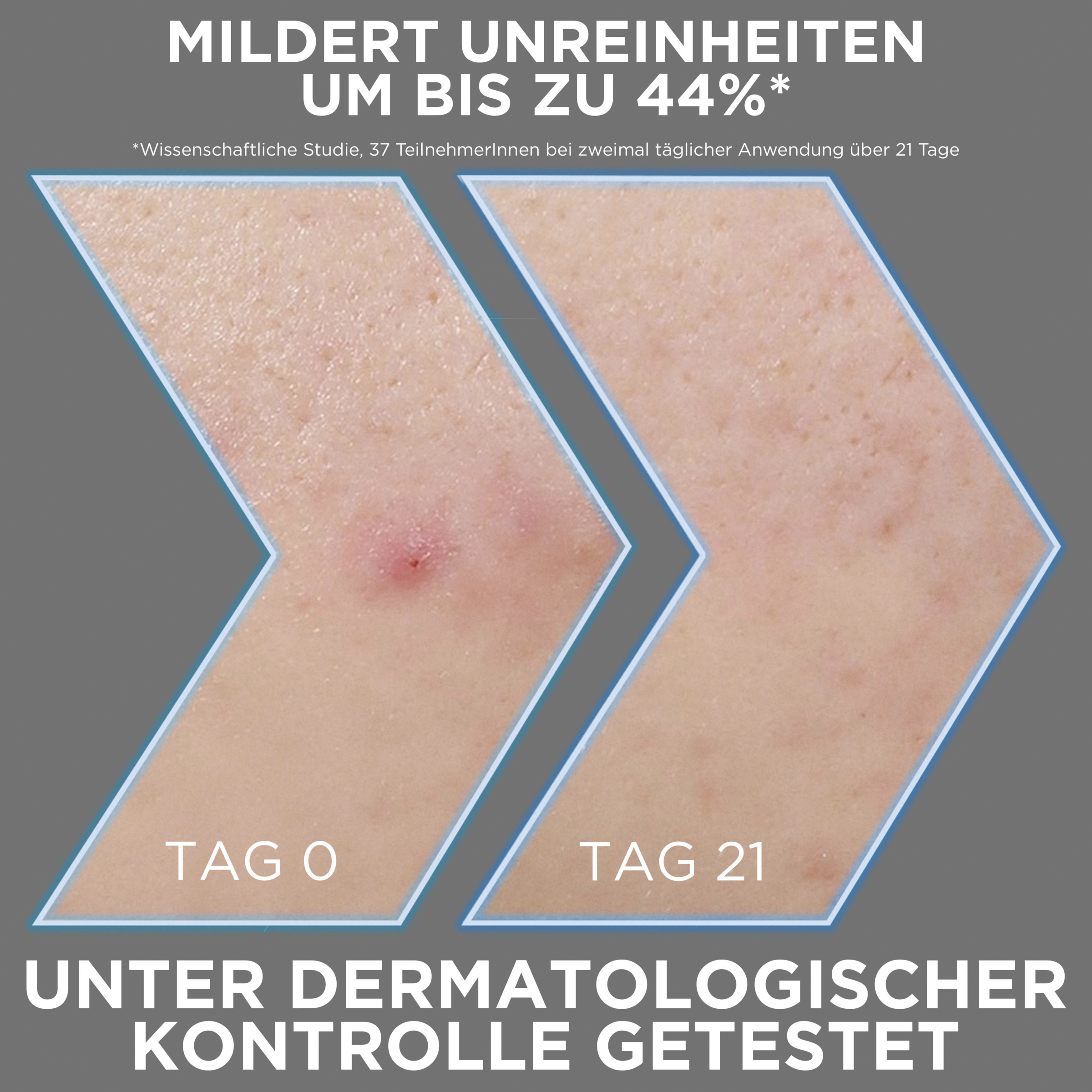 Garnier Skin Clear Anti-Impurities Serum er særligt velegnet til pleje af uren hud, der har tendens til hudorme, pletter, forstørrede porer og rødme. Den indeholder trækul og 4 % niacinamid samt AHA og BHA. Disse ingredienser reducerer synligt urenheder og pletter, samtidig med at de fornyer huden og giver en glattere og mere ensartet teint. Efter bare én påføring føles huden glattere og matteret, og efter syv dage ser teinten finere og mere ensartet ud. Efter 28 dages brug er pletter, hudorme, porer og rødme synligt reduceret.