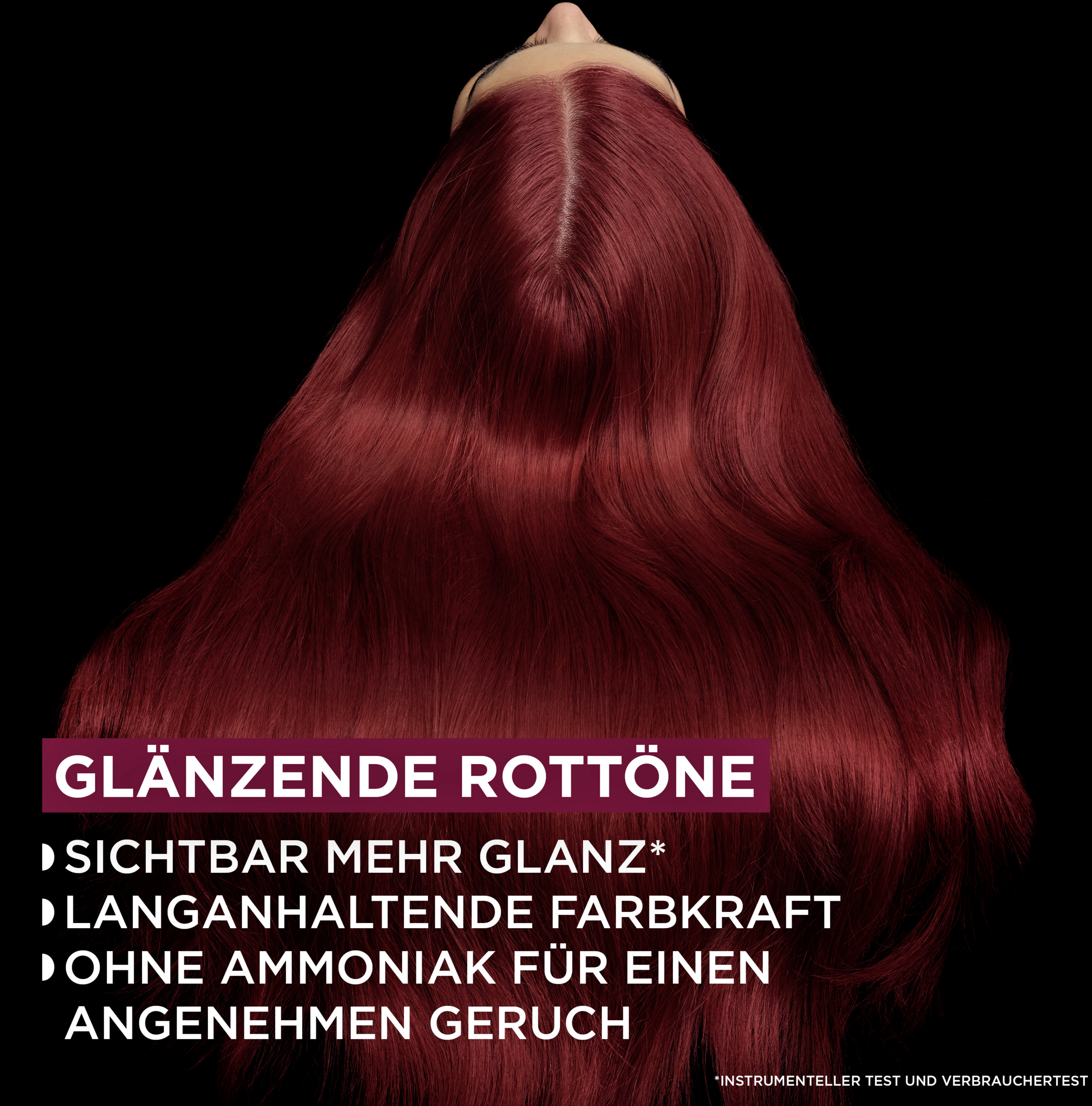 - den veganske formel uden silikoner og ammoniak indeholder blomsterolier af naturlig oprindelse samt resistente farvepigmenter, der giver en langvarig rubinrød farve