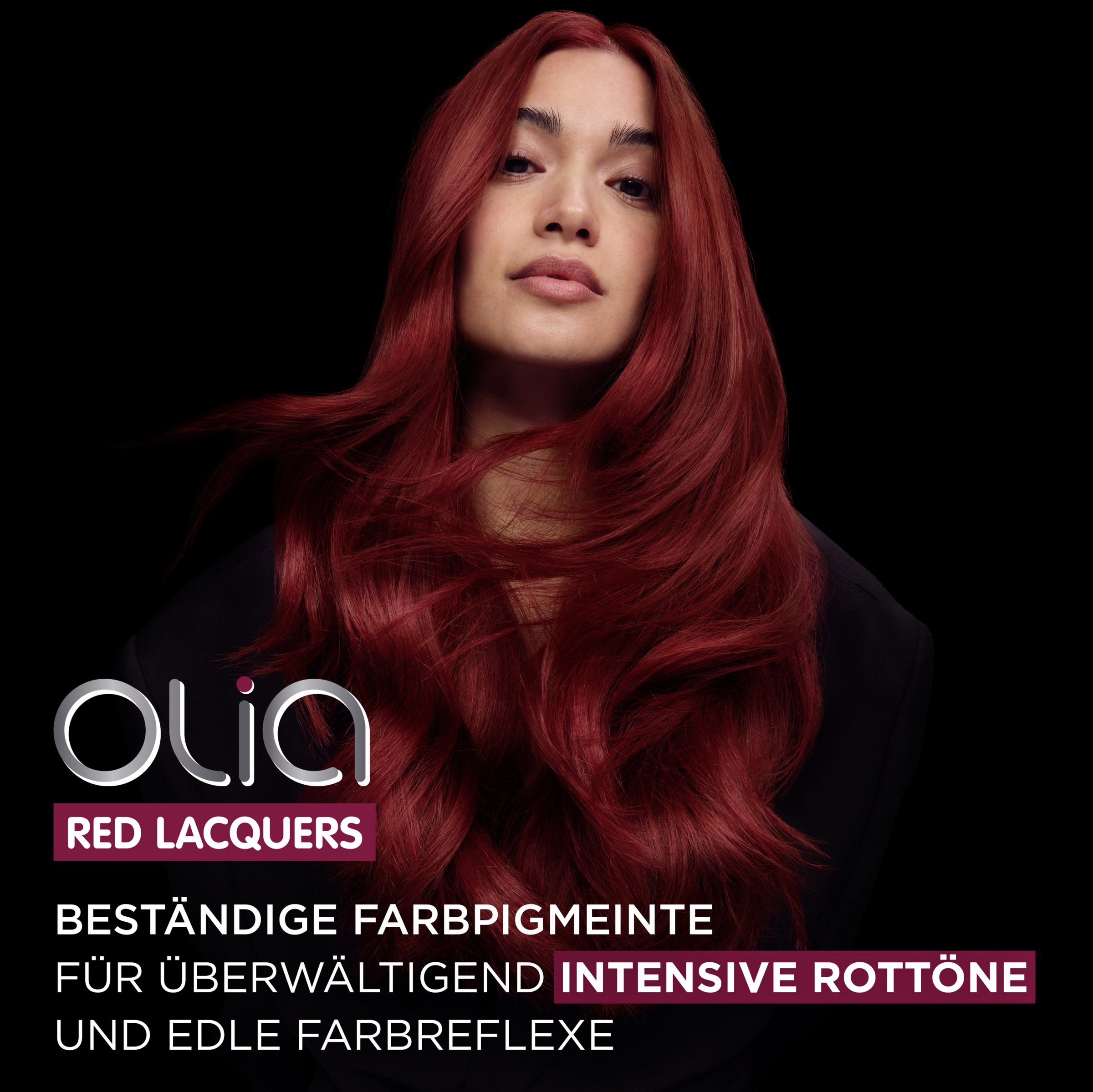 - olia Red Lacquers permanente hårfarve sikrer intense, sofistikerede farvereflektioner, langtidsholdbare farveresultater og særlig farveekspertise