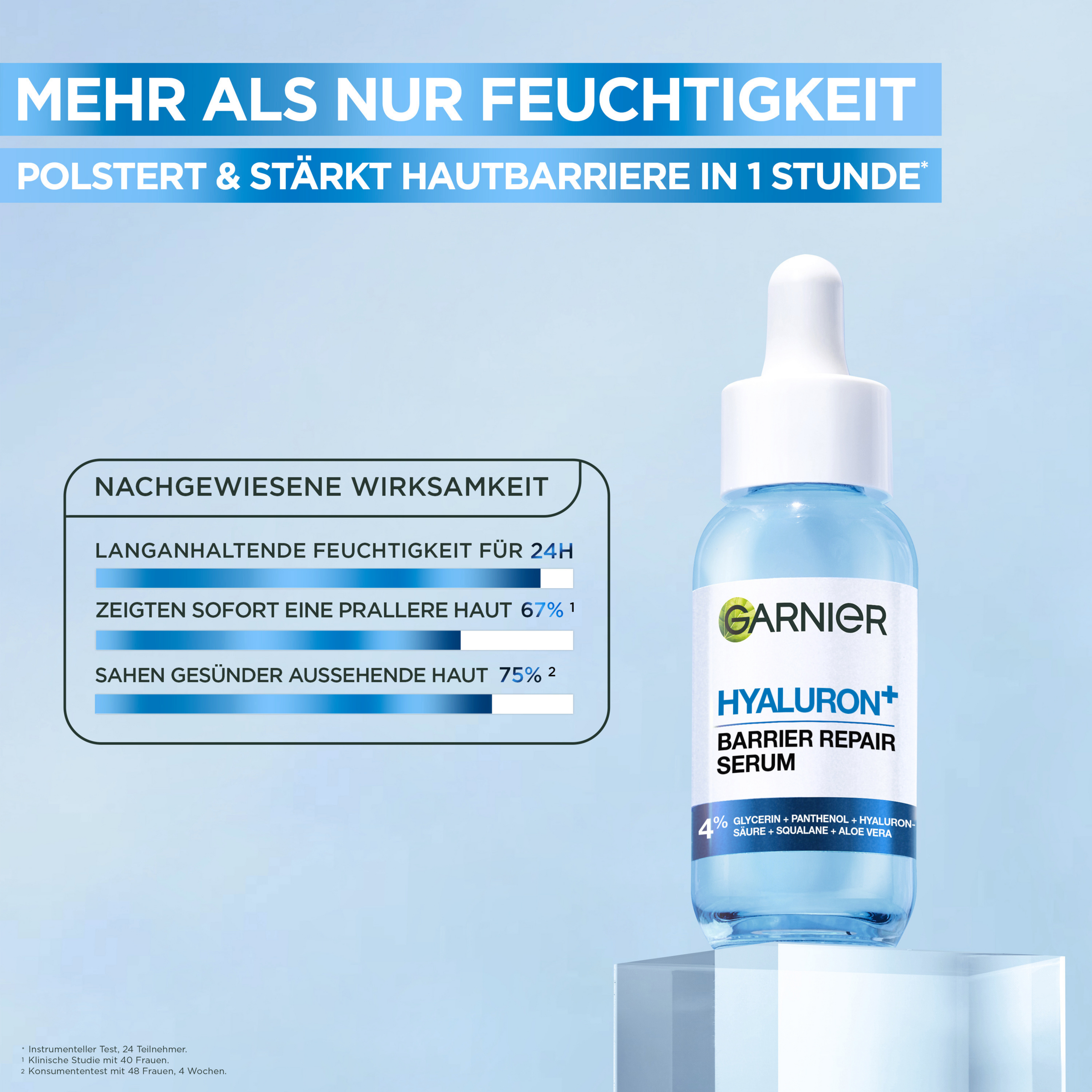 Garnier SkinActive Hyaluron Aloe Serum er intensivt fugtgivende og fremmer en glattere Teint. Takket være den tredobbelte kombination af essentielle Ingredienser, tilføres huden optimalt fugt. Samtidig styrkes Hudbeskyttelsesbarriere . Opnået gennem biotransformation har Hyaluronsyre en særlig plumpende effekt på huden. Glycerin har i kombination med aloe vera en langvarig fugtgivende effekt. Aloe vera giver også en vidunderlig forfriskende følelse. Den veganske formel i Hyaluronic Aloe Serum får straks huden til at fremstå glattere og mere smidig. Ved regelmæssig Anvendelse får huden synligt Spændstighed og fremstår mere plejet – for en smukkere Teint og forbedret udstråling.