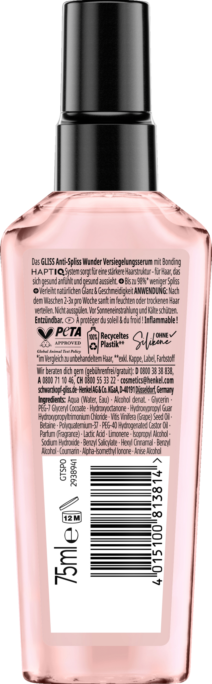 Gliss Anti-Spliss mirakelbalsam - Forsegler spaltede spidser i lang tid. Ikke længere lyst til spaltede spidser og hyppig klipning af spidserne? Forsegl spaltede spidser langvarigt! Med HAPTIQ System udjævner Gliss Serum ujævnheder i hårstrukturen fra rødderne til spidserne. Serummet fungerer som en lynlås til håret og forsegler spaltede spidser i lang tid - for op til 98 % færre spaltede spidser¹. Det giver naturlig glans og smidighed. Serummet beskytter også håret under føntørring. En kombination af aktive ingredienser af høj kvalitet og naturlige essenser er grundlaget for alle Gliss formler. De er tilpasset efter hårets særlige behov og sørger for reparation og en synligt forbedret hårkvalitet. Gliss hårprodukter er PETA-certificerede² og flaskekroppen på dette hårpleje er lavet af 100 % genbrugsplast³.