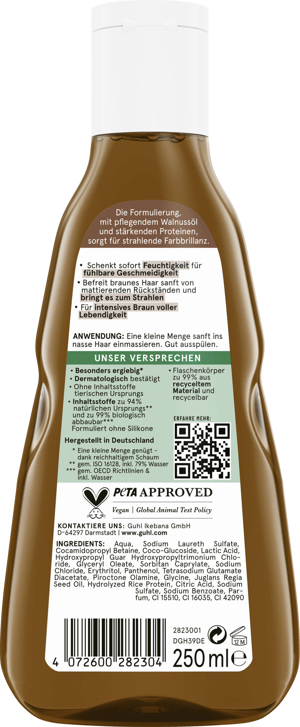- Guhl lover det: Dermatologisk bekræftet - Ingredienser af 92 % naturlig oprindelse - Flaskekroppen er 99 % genanvendt - Fremstillet i Tyskland