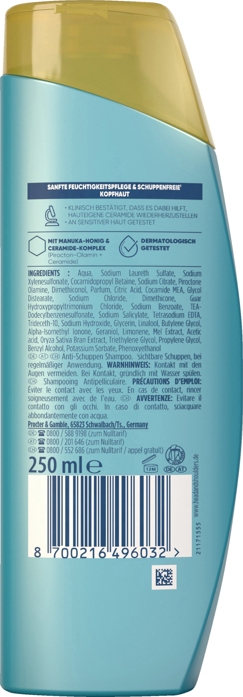 - MED MANUKA HONNING OG CERAMIDKOMPLEKS. Denne ekspertformel med manuka honning, piroctone olamine og ceramide er specielt udviklet til pleje af tør og følsom hovedbund