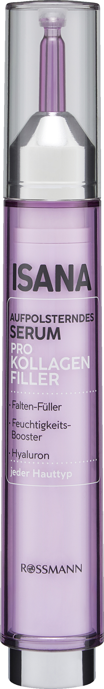 ISANA Pro-kollagenfyldstof med sin behageligt lette formulering med vegetabilsk pro-kollagen og duo-hyaluron er et kraftigt anti-rynkeserum med 3-dobbelt effekt. Den målrettede applikation med blyant muliggør præcis påføring i rynkerne for at udvikle effekten der, hvor der er behov for det. Formuleringen med duo-hyaluron-kompleks tilfører og binder effektivt intens fugt. Mens lavmolekylær hyaluronsyre stimulerer hudens egen hyaluronsyre og derved udfylder huden indefra og forsyner den med fugt, understøtter den højmolekylære hyaluronsyre hydreringsniveauet på hudens overflade. Samtidig stimulerer den vegetabilske pro-kollagen hudens egen kollagensyntese og modvirker rynkedannelsen – for en en helt igennem smuk hud.