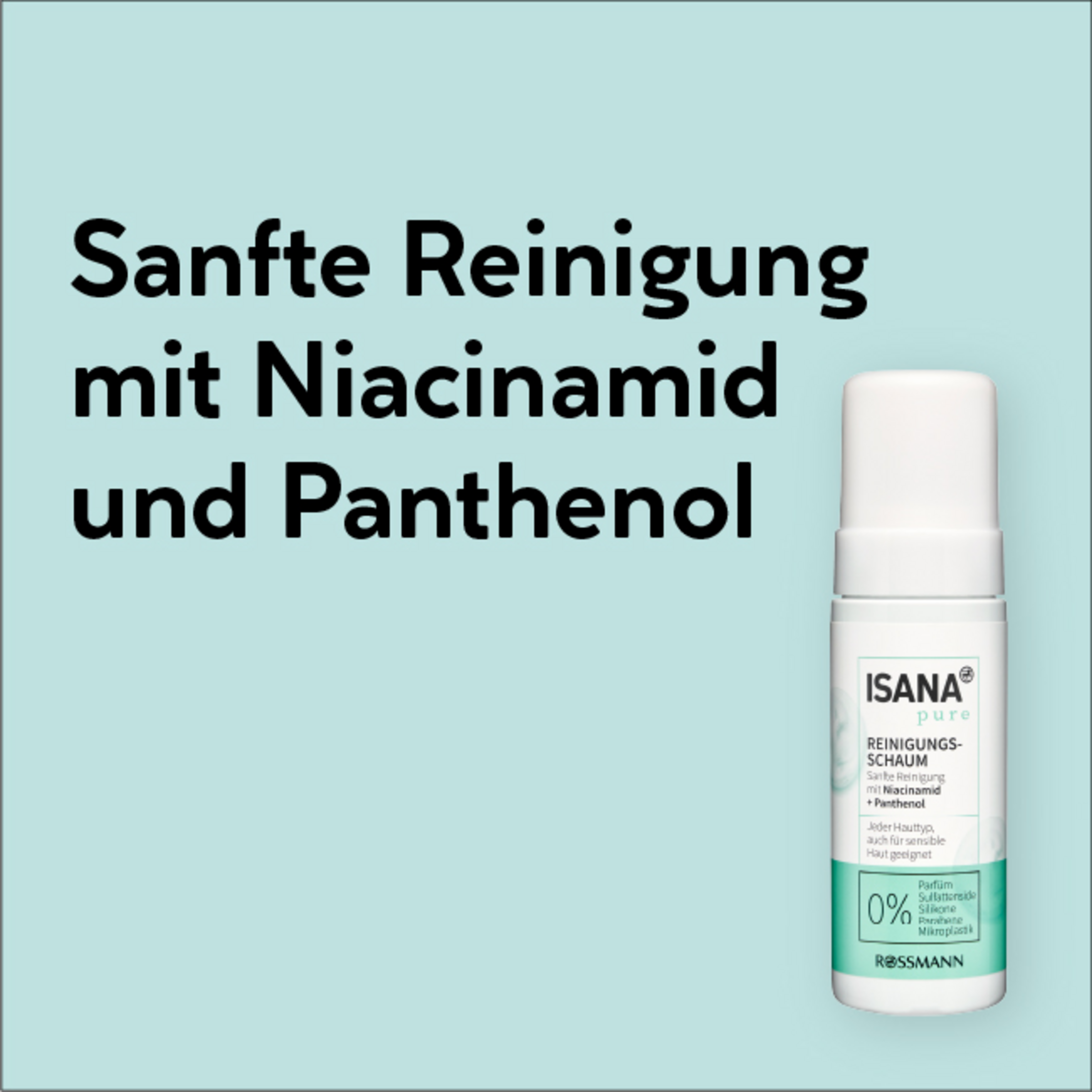 ISANA Rengøringsskum Pure med et vitaminkompleks bestående af vitamin B3 (niacinamid) og pro-vitamin B5 (panthenol) fjerner skånsomt og grundigt Makeup og smudspartikler fra huden. Den milde renseformel uden Parfume revitaliserer huden og er velegnet selv til følsomme hudtyper. Resultat: Huden føles blød og grundigt renset. HUDKOMPATIBILITET: Dermatologisk testet og bekræftet, pH-neutral Denne Formel er 100% fri for Mikroplast.