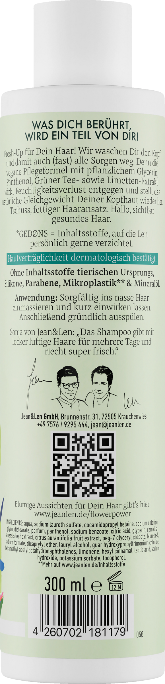Den veganske plejeformel beskytter dit hår mod fugttab og genopretter balancen i din hovedbund. En ekstra portion grøn te og limeekstrakt giver et friskhedsboost.