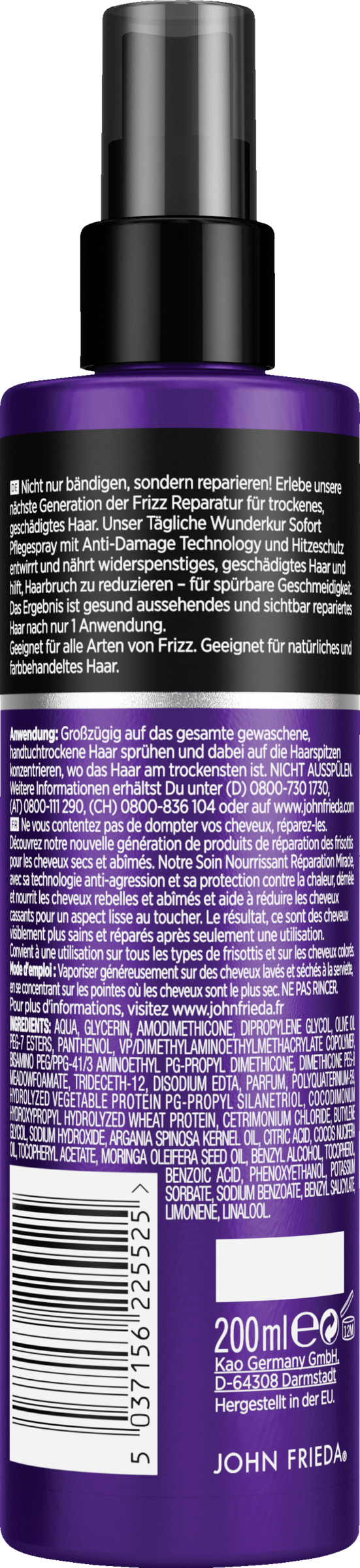 Ernær dit hår, og gør det mindre filtret for mærkbar smidighed. Den daglige mirakelkur - Straks-plejespray udfiltrer og plejer tørt, beskadiget og genstridigt hår og hjælper med at reducere hårbrud. For en silkeblød fornemmelse i håret.