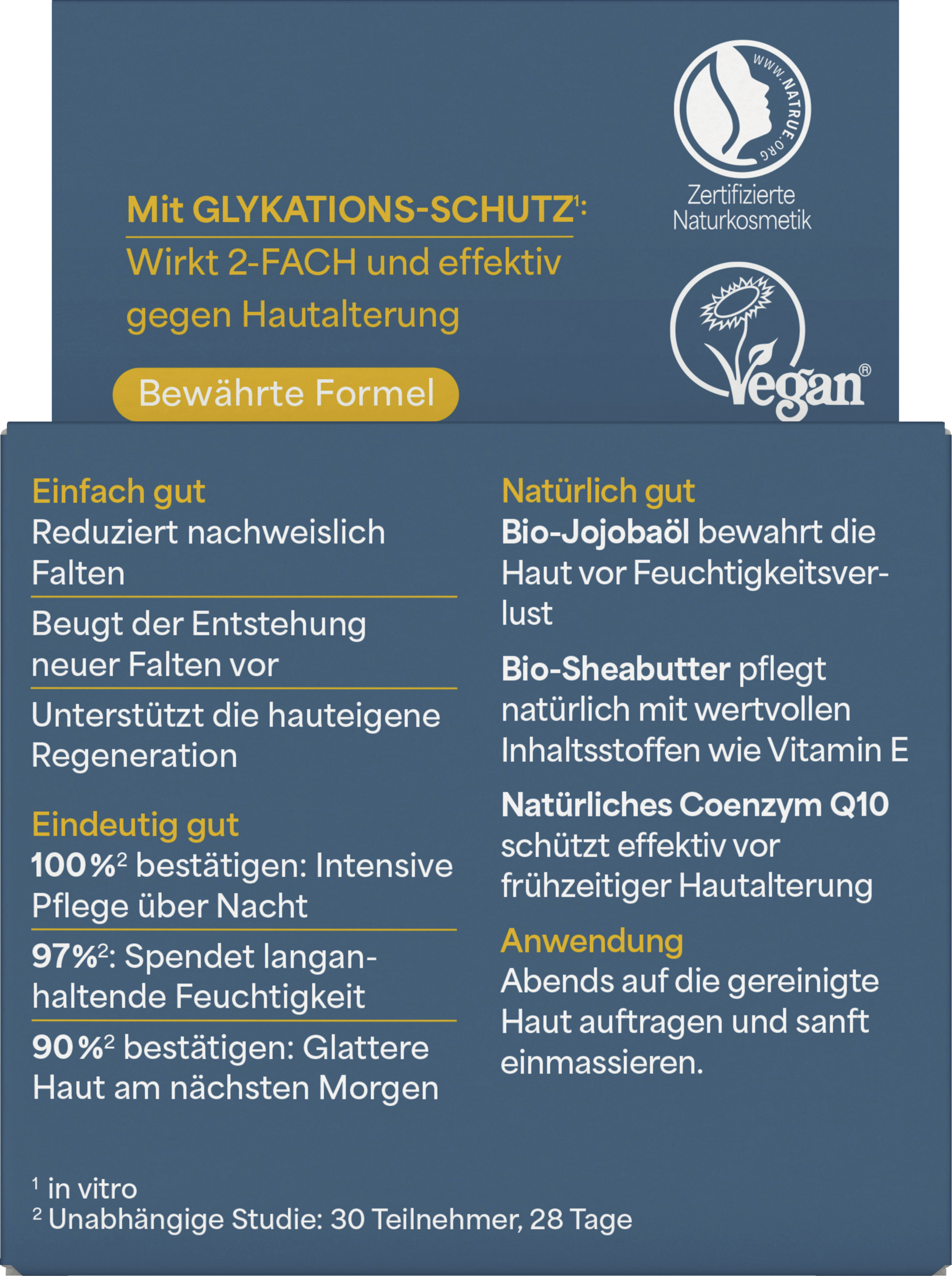 Oplev lavera følelsen af naturlig udglattet hud natten over: lavera baseret sensitiv anti-rynke Natcreme med Bio jojoba og økologisk Sheasmør understøtter hudens egen regenerering under den natlige hvilefase. Den milde og veltolererede formel med naturligt coenzym Q10 bekæmper for tidlig aldring af huden takket være antioxidantegenskaber og har vist sig at reducere rynker og rynker, mens du sover. Mærk, hvordan den hurtigt absorberede tekstur forsigtigt smelter ind i din hud og giver den langvarig fugt - for synligt glattere Teint og ny Smidighed næste morgen.