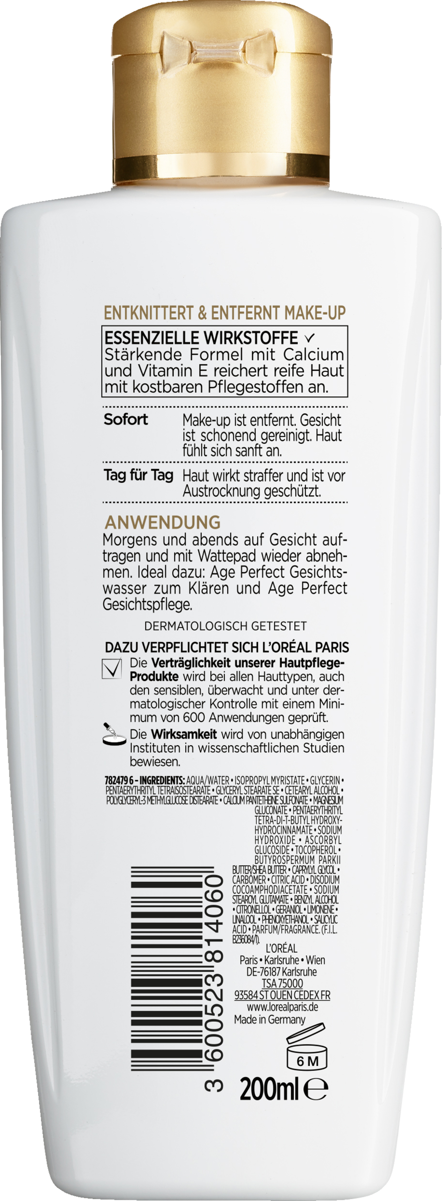 Rensemælken til moden hud renser og fjerner skånsomt makeup. Den styrkende formel med calcium og E-vitamin fastgør huden, så den ser strammere ud og er beskyttet mod udtørring. Age Perfect rensemælk til moden hud renser og fjerner makeup skånsomt. Den styrkende formel, der er beriget med calcium og E-vitamin, fastgør huden, så den ser strammere ud og er beskyttet mod udtørring. L'Oréal Paris' Age Perfect renseprodukter er specielt skræddersyet til moden huds behov. De renser ikke blot huden for snavs, men tilfører den også vigtige, aktive ingredienser. Dette forbereder huden optimalt til efterfølgende behandling.