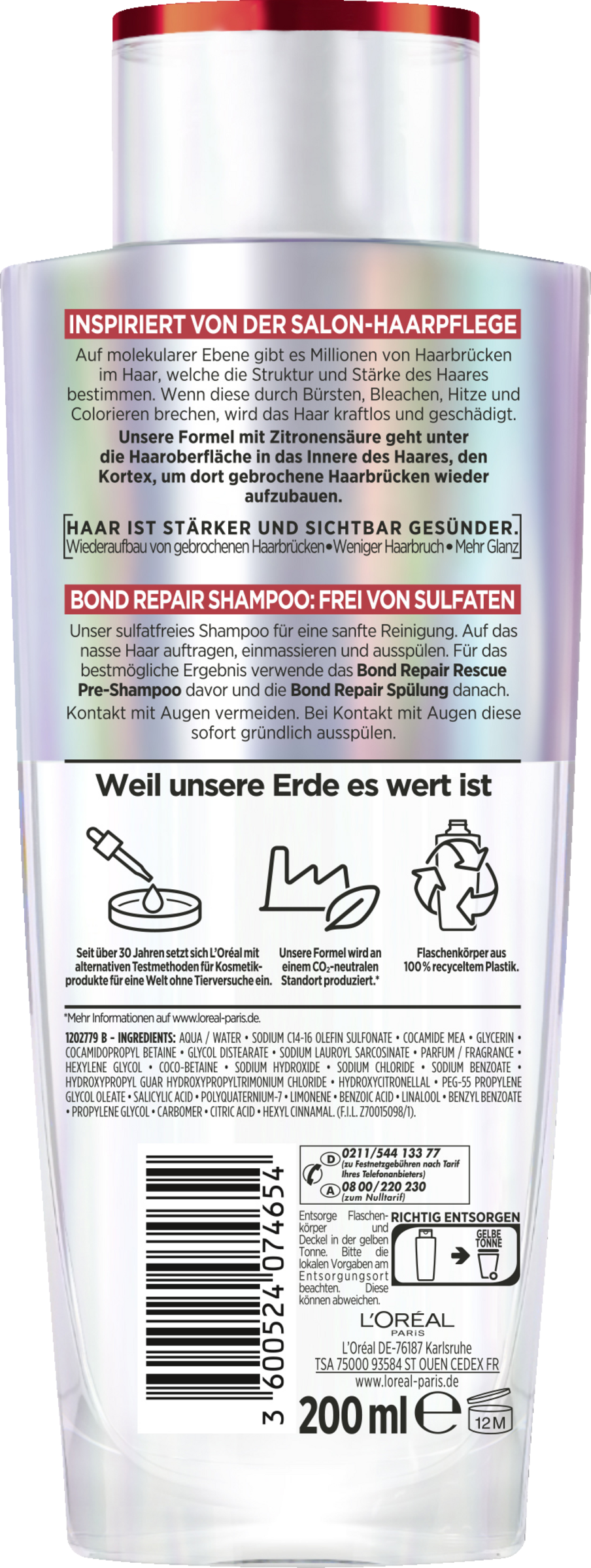 Påføres i det våde hår, masseres ind og skylles ud. For det bedst mulige resultat, brug Bond Repair Rescue Pre- Shampoo før og Bond Repair Hårbalsam efter.