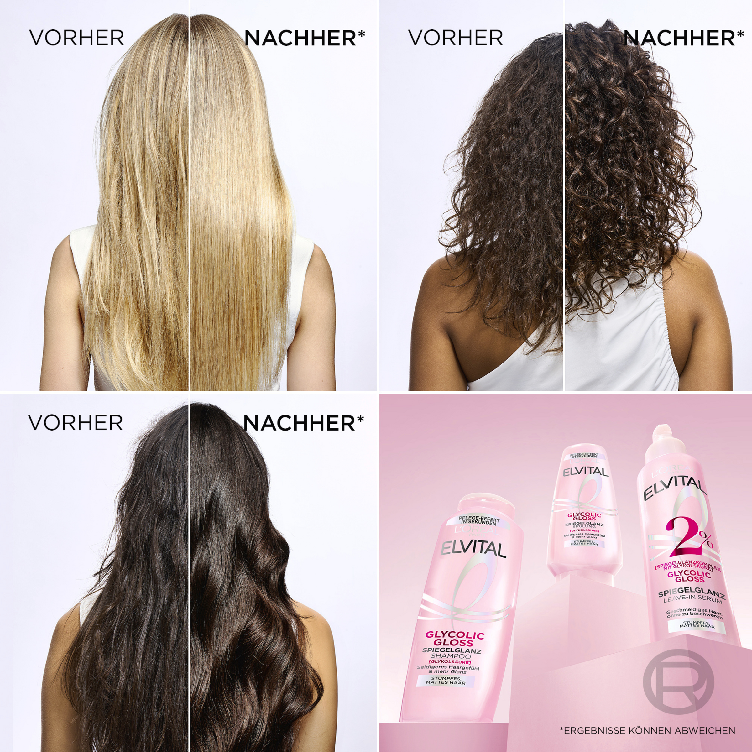 Efter shampoo og en passende balsam sprayes Elvital Glycolic Gloss Leave-in Serum fra L'Oréal Paris i hårets længder, og håret styles derefter som normalt. Serummet skal ikke skylles ud og kan også bruges ind imellem for at pleje håret og beskytte det mod krus. For optimal effekt og maksimal spejlglans anbefales regelmæssig brug af den komplette Elvital Glycolic Gloss-hårplejeserie fra L'Oréal Paris.