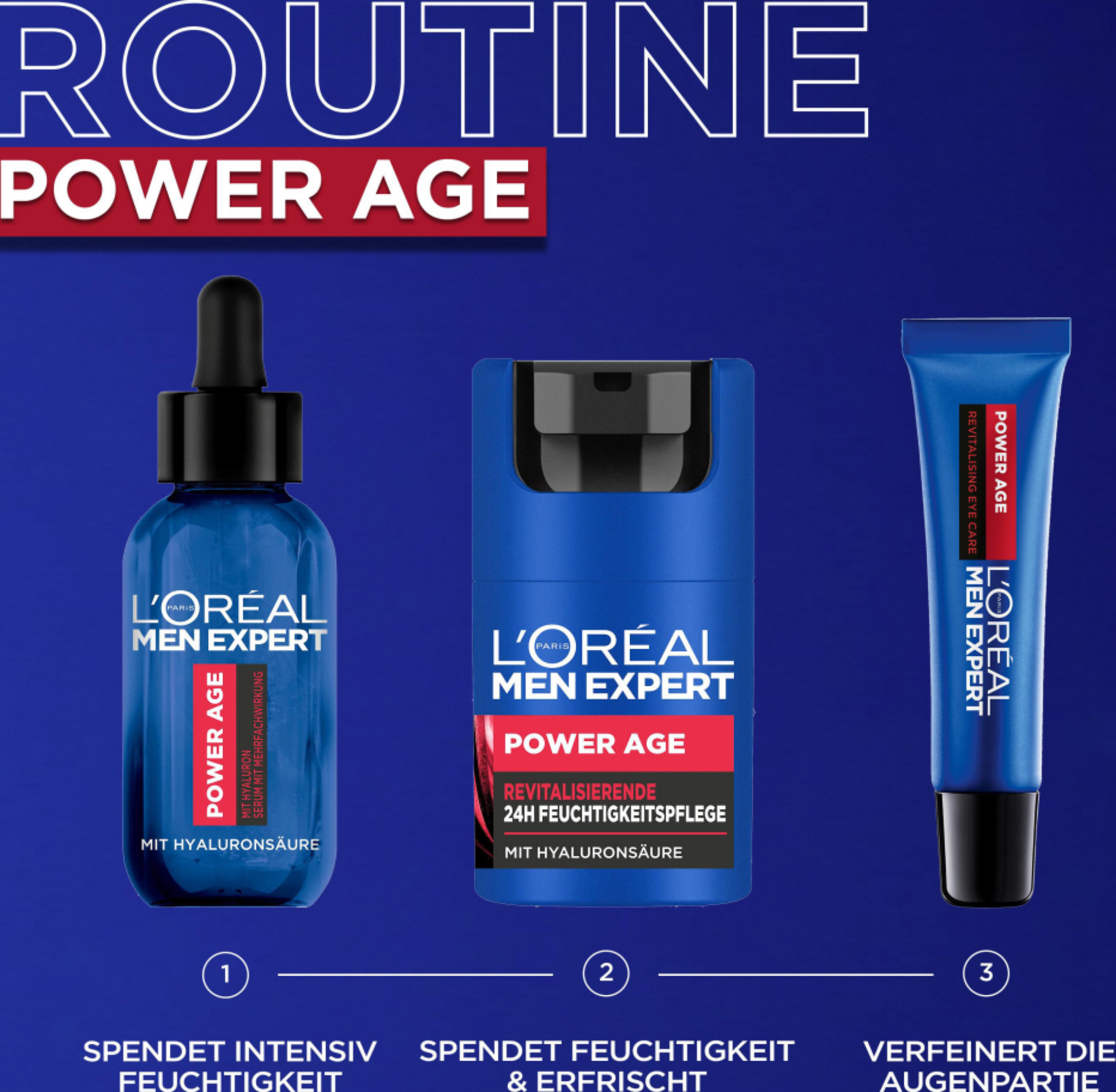 Sættet består af: 1x Power Age fugtighedscreme 50ml, 1x Power Age Serum 30ml Den perfekte duo til tør mænds hud med de første tegn på aldring: opdag den Power Age revitaliserende 24H fugtighedscreme & Power Age serum med hyaluronsyre til mænd . Fugtighedscremen giver mærkbart fastere hud, friskere og revitaliseret hud og en glattere teint. Den absorberes hurtigt og er usynlig på huden. Formlen indeholder hyaluronsyre, som er kendt for sine særligt fugtgivende egenskaber og dermed sikrer, at huden føles frisk. Power Age Serum udglatter, opstrammer og revitaliserer hudens udseende. Hjælper med at reducere de synlige tegn på aldring og holder huden sund.