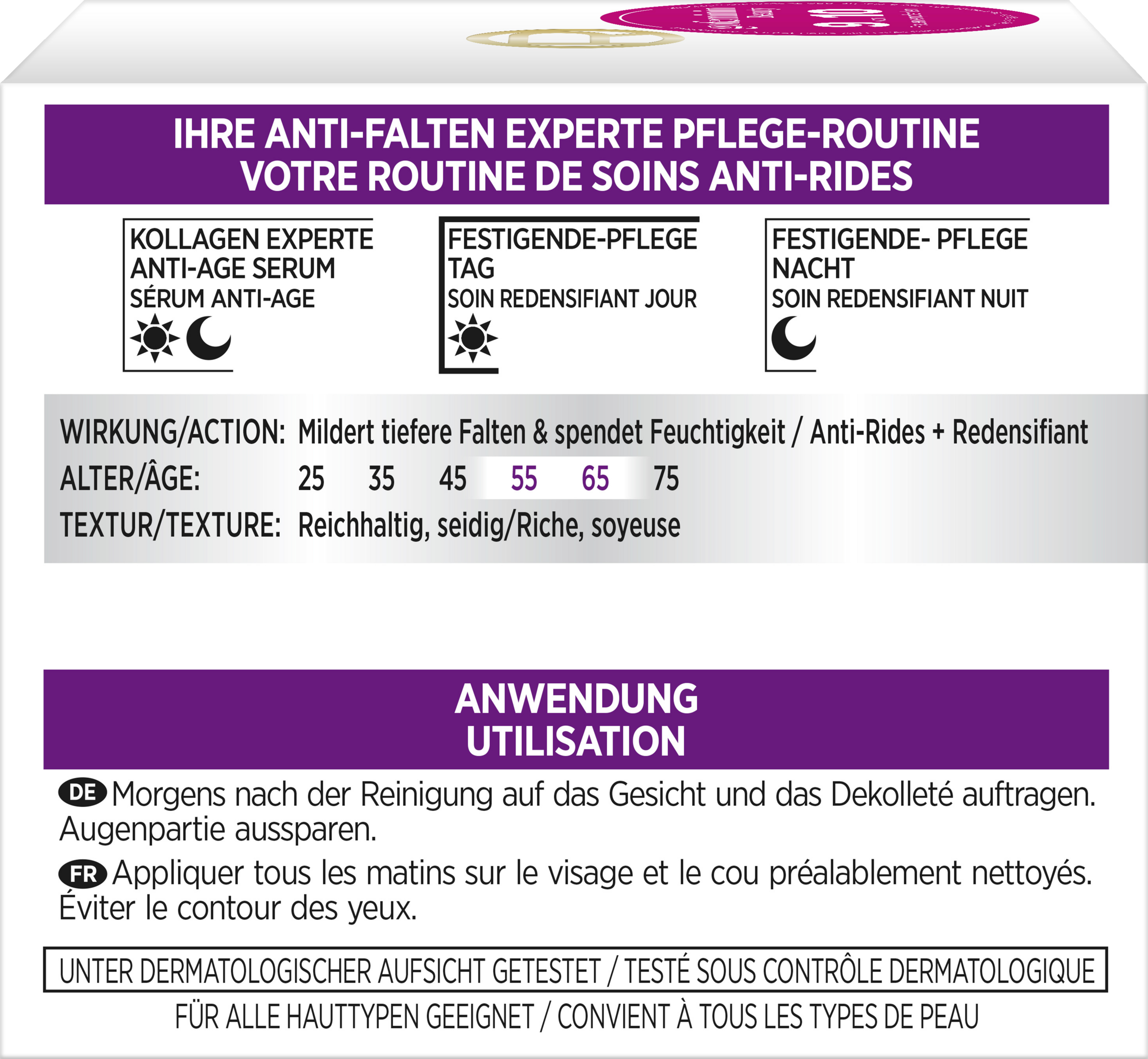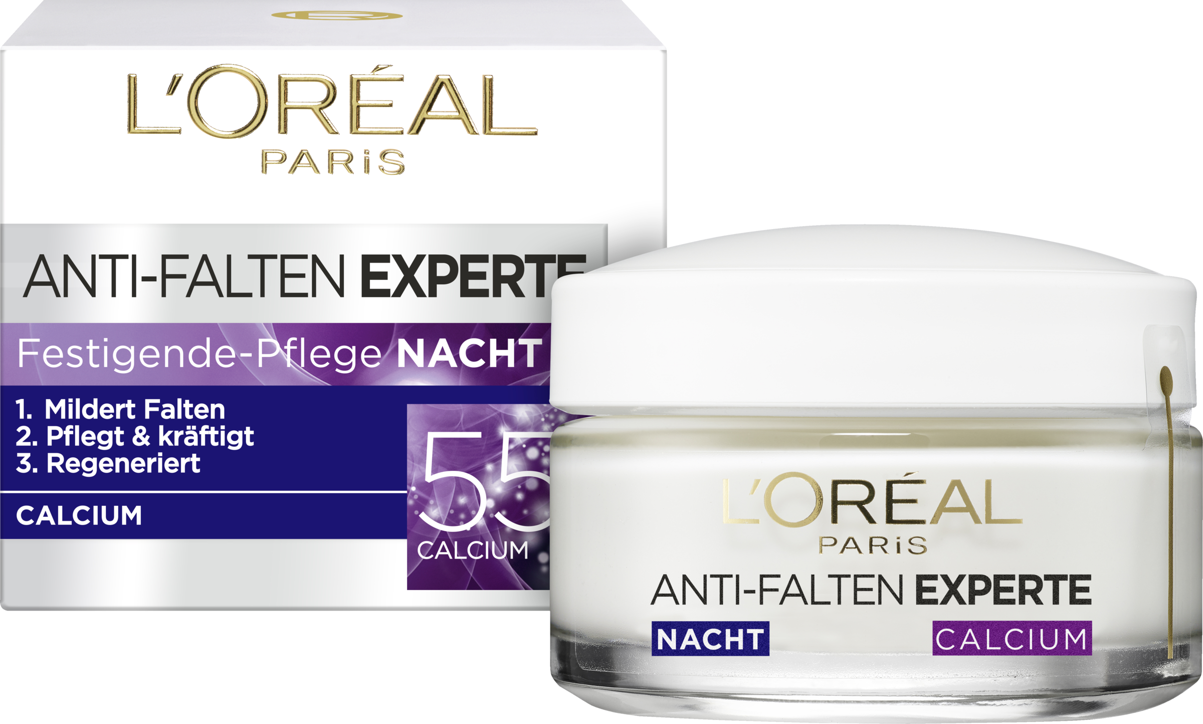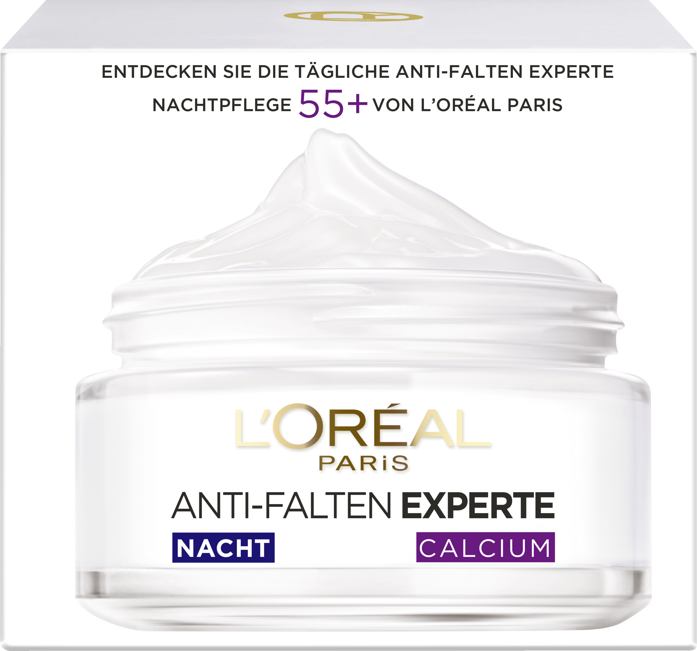 Fra 55-årsalderen bliver huden mere og mere tør, den mister substans, og der opstår dybere rynker. L'Oréal Paris ANTI-WRINKLE EXPERT 55+ er udviklet specielt til hudens behov fra 55-års alderen. CALCIUM absorberes biologisk af huden og genaktiverer cellekohæsionen. Epidermis genopbygges i dybden.