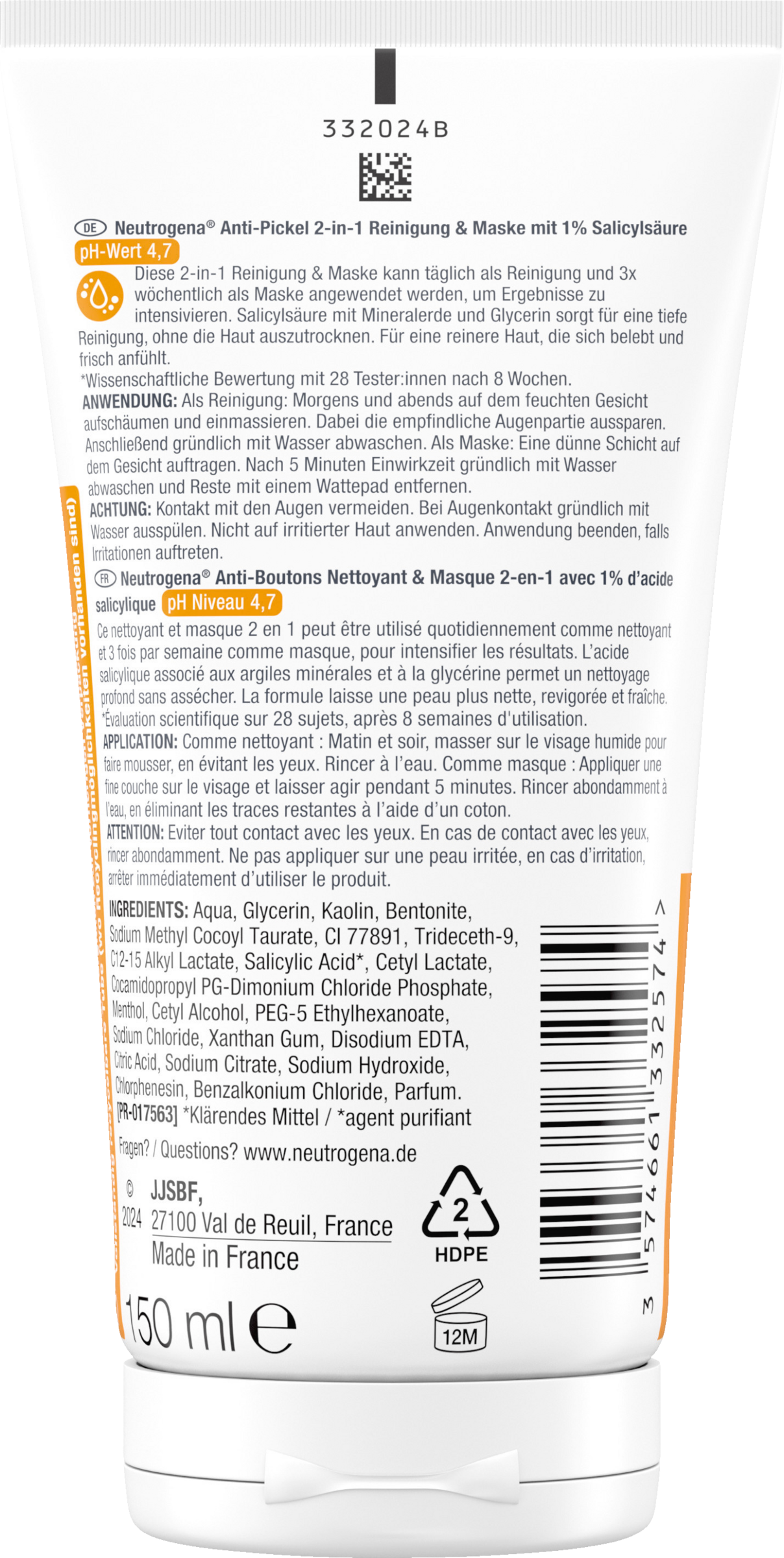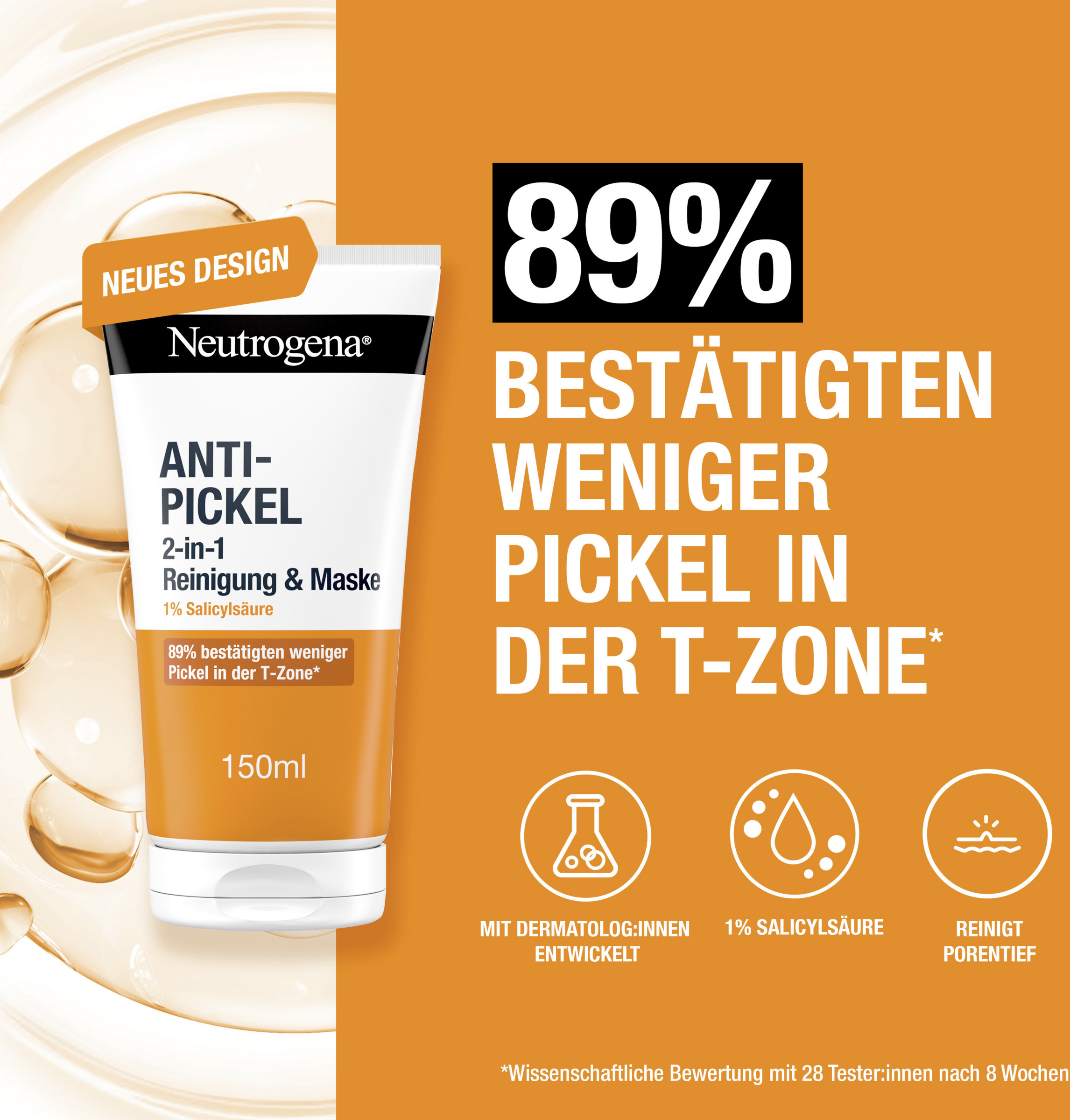 Denne oliefri rens og maske renser huden dybt, fjerner overskydende talg og forbedrer din teint. Videnskabeligt bekræftet: Det hjælper med at fjerne selv stædige bumser fra allerførste påføring og opretholder hudens beskyttende barriere. Det gør huden mere modstandsdygtig over for nye pletter - og giver en klarere og mere ensartet hud.