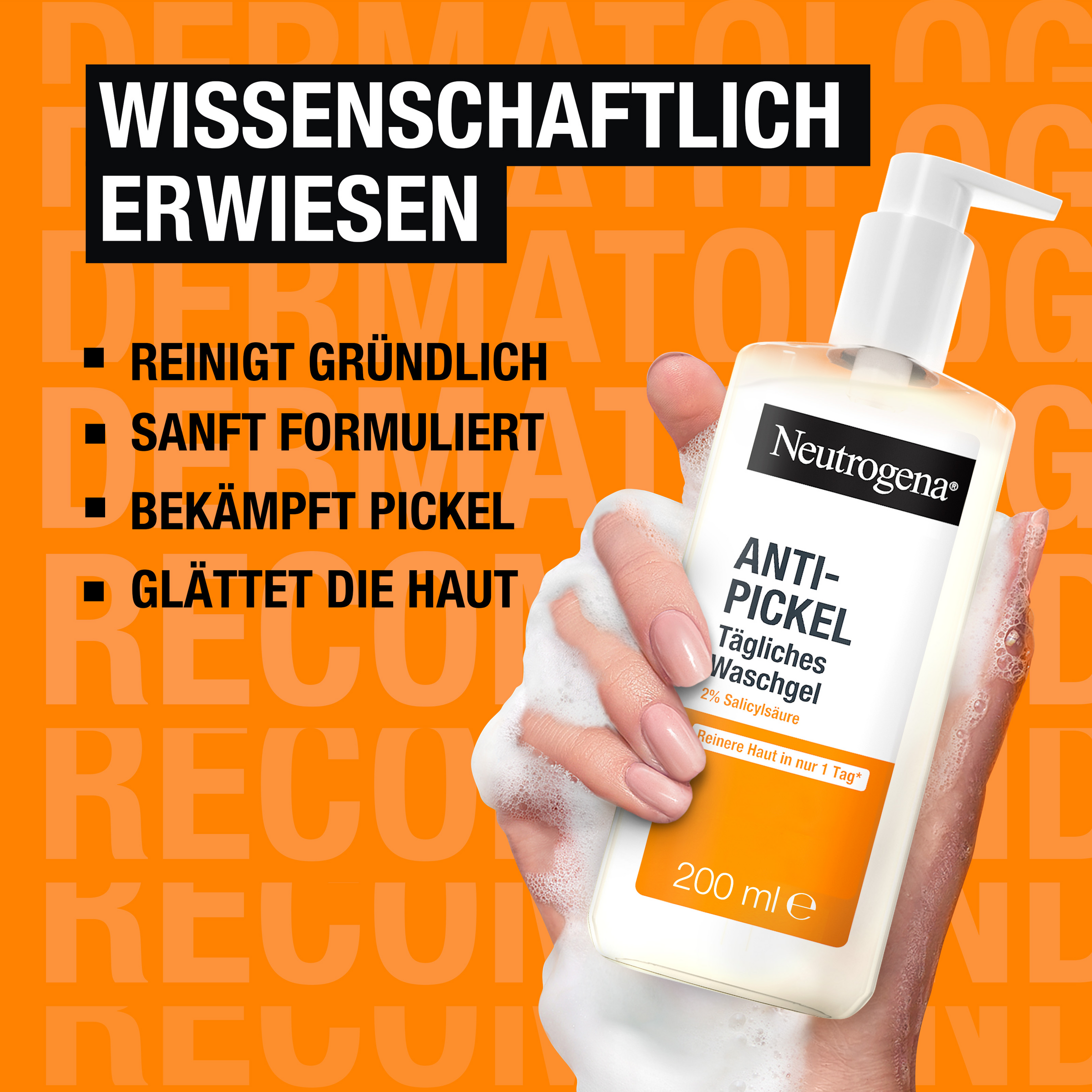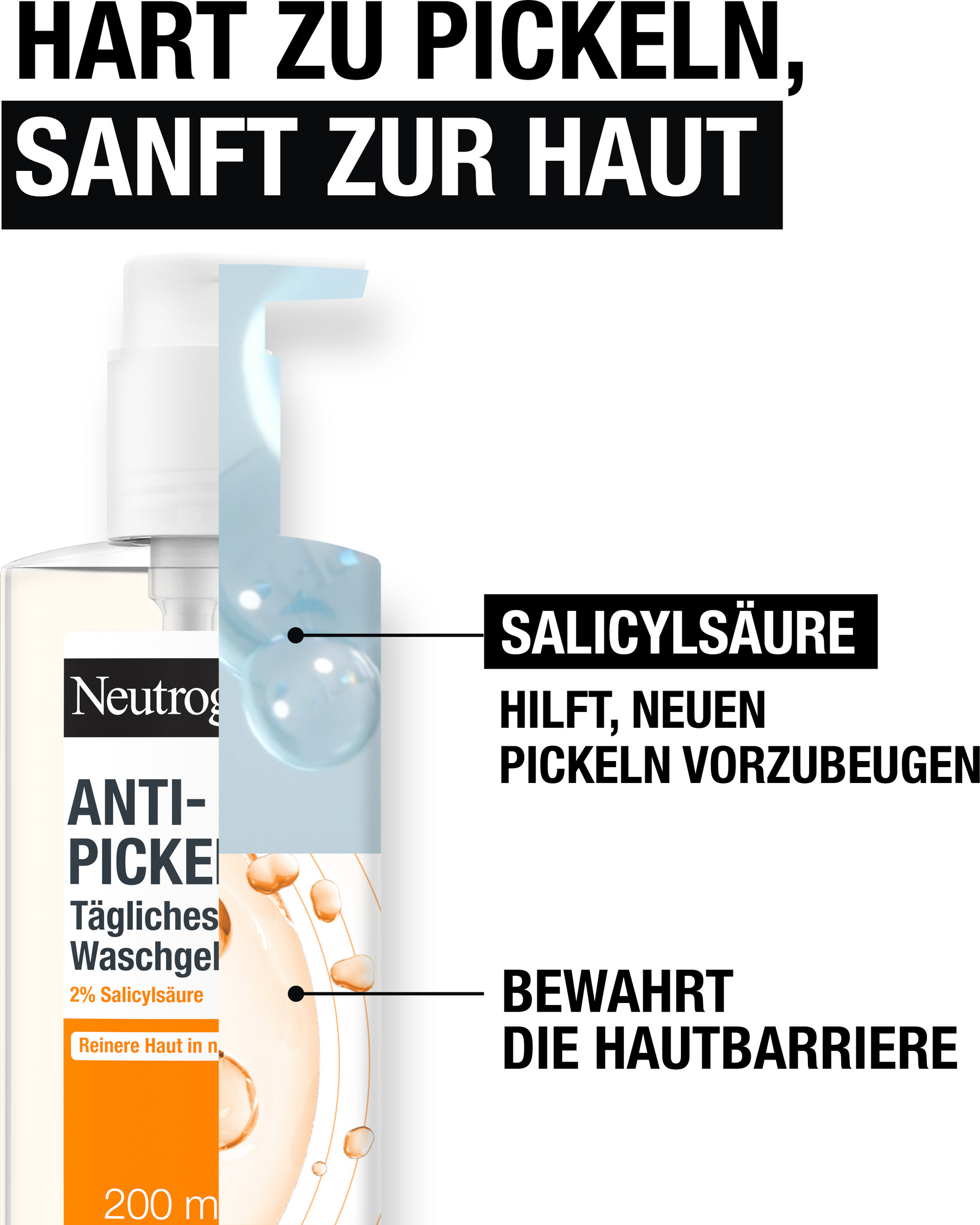 - Neutrogena Anti-Pickel Tägliches Waschgel: Aqua, Cocamidopropyl Hydroxysultaine, Sodium Methyl Cocoyl Taurate, Glycerin, Salicylic Acid, Sodium Hydrolyzed Potato Starch Dodecenylsuccinate, C12-15 Alkyl Lactate, Panthenol, Cocamidopropyl PG-Dimonium Chloride Phosphate, Disodium Tetrapropenyl Succinate, PEG-120 Methyl Glucose Dioleate, Sodium Chloride, Disodium EDTA, Citric Acid, Sodium Hydroxide, Tocopherol, Benzalkonium Chloride, Parfum [PR-017560].