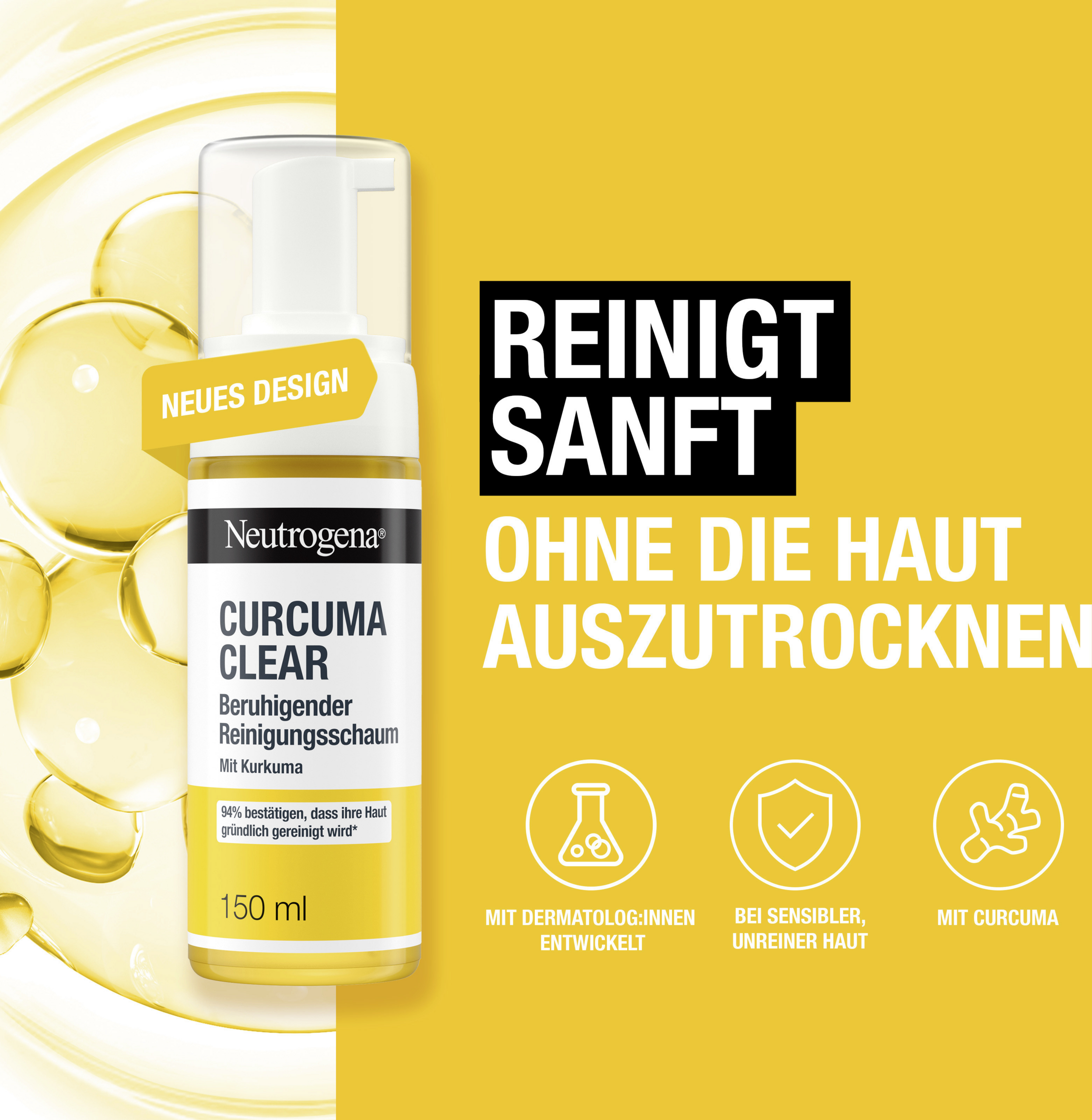 - 94 % bekræfter, at deres hud er grundigt renset* - Neutrogena Curcuma Clear Soothing Cleansing Foam renser blidt. 94 % bekræfter, at deres hud er grundigt renset*