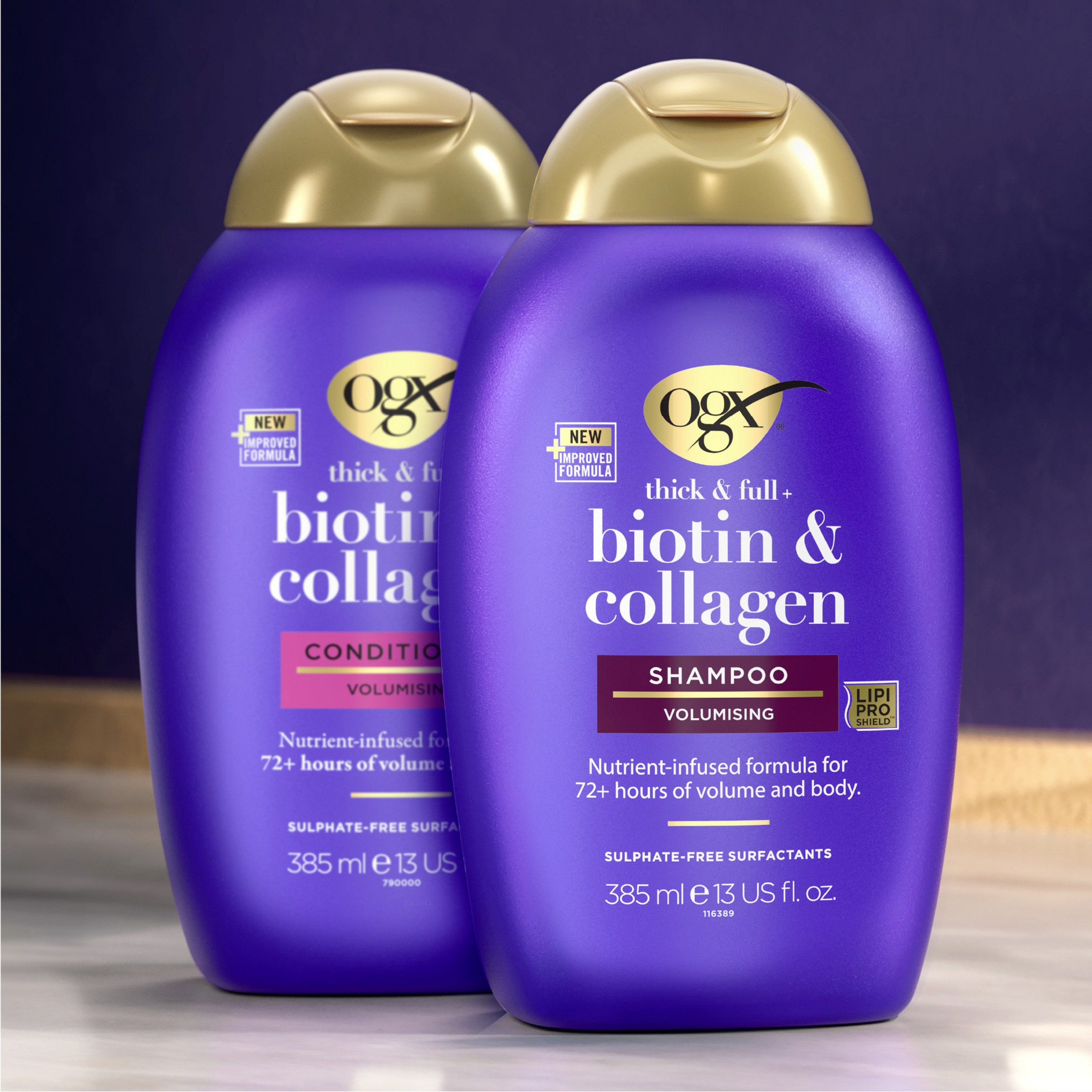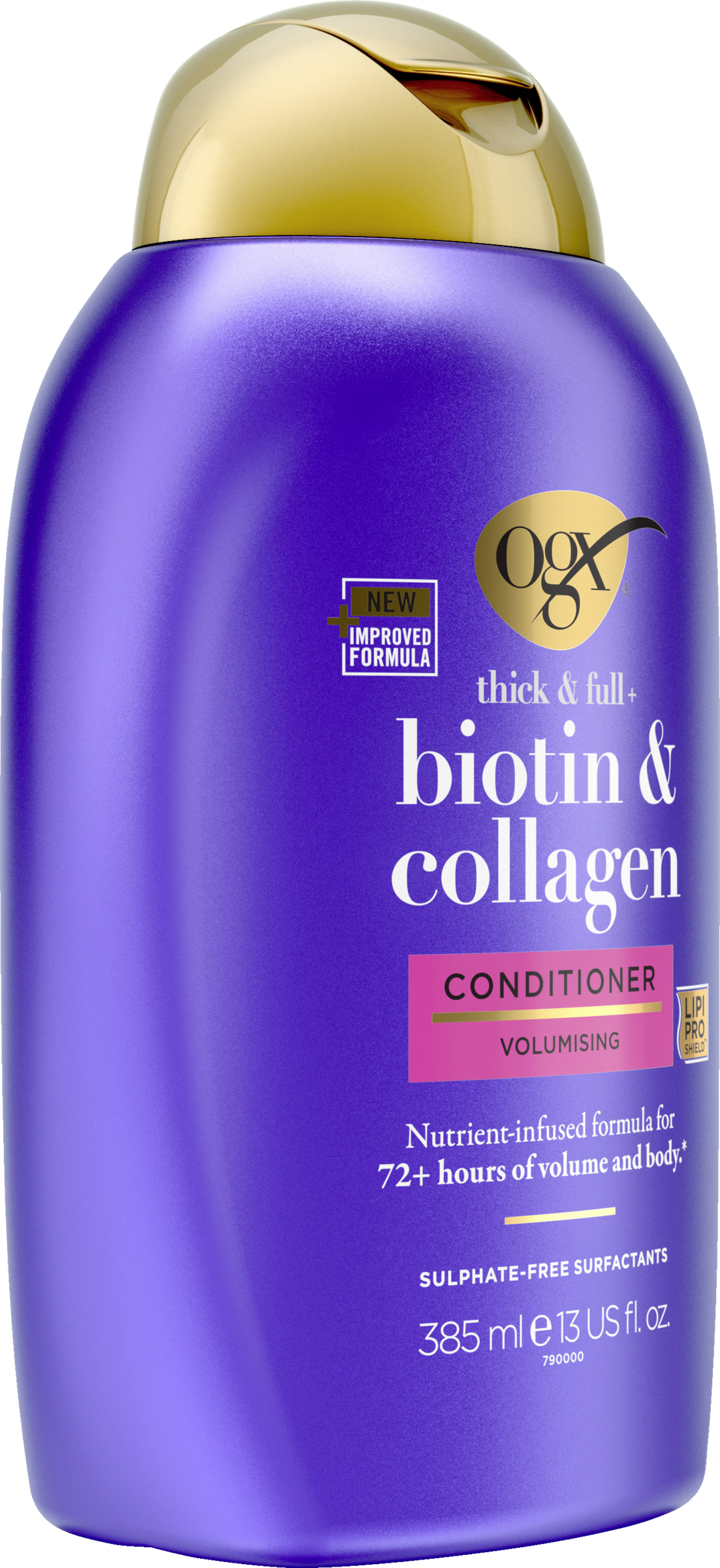 - Volumenbalsam til fint og tyndt hår - OGX Biotin & Collagen Conditioner giver fint og tyndt hår mere volumen og intens fylde* i 72+ timer takket være den rige plejeformel